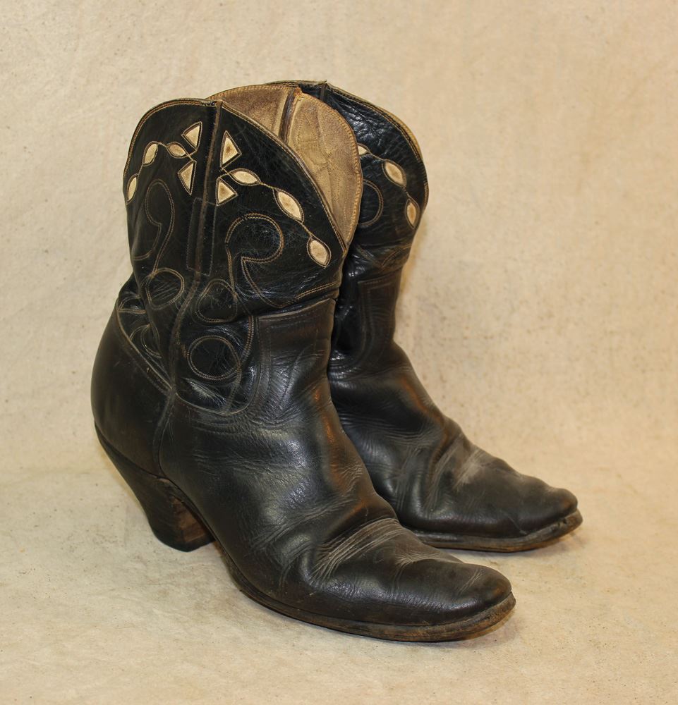 Attractive "shorty" boots with cut-out design in the tops and desirable tall Cuban heels. Tony Baratono collection.