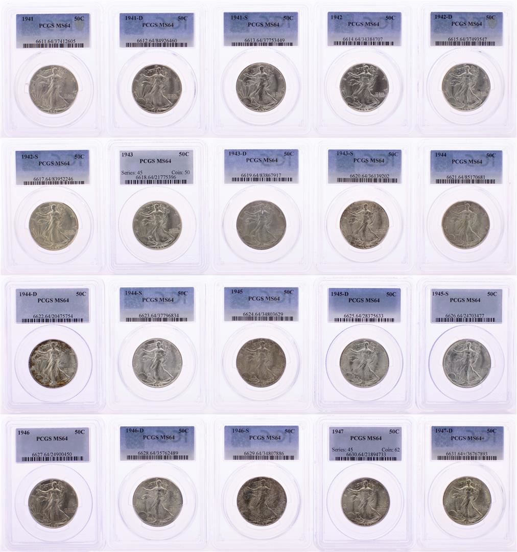 One Short Walker Set of 1941-1947 Walking Liberty Half Dollar Coins PCGS MS64. PCGS Graded.