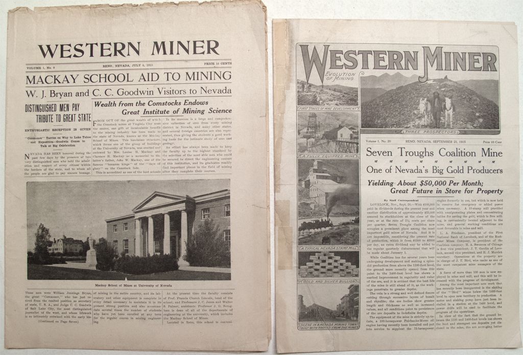 Two newspapers. Articles include Seven Troughs, Rochester, and William Jennings Bryan visit to Nevada, First run of paper: May 3, 1915 to June 30, 1916. (It would be revitalized years later.) As with all old newspapers the paper is very fragile, but the historical value in articles and advertising is tremendous.