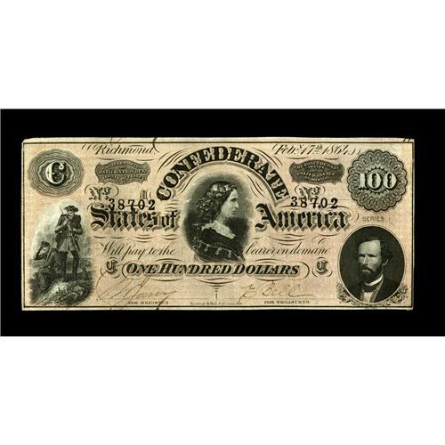<B>Short set of 1864 Issues.</B></I><BR>T-65 <B>Choice AU</B></I>,<BR>T-66 <B>CU,</B></I> with a partial CSA Treasury stamp at upper left,<BR>T-67 <B>Choice CU</B></I>,<BR>T-68 <B>AU</B></I>,<BR>T-69 <B>AU</B></I>.<BR><BR><BR><b>Shipping:</b> Coin/Currency (<a target="_blank" href="http://www.heritageauctions.com/common/shipping.php">view shipping information</a>)