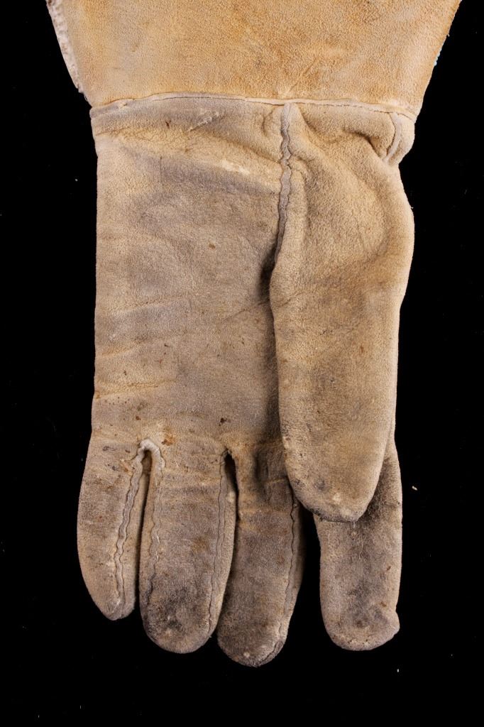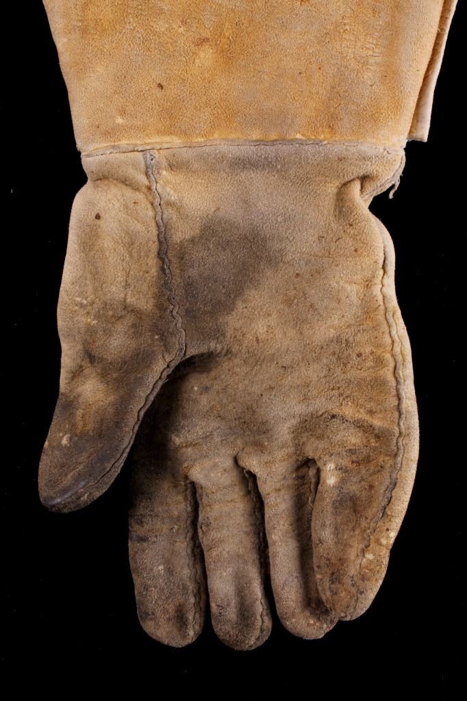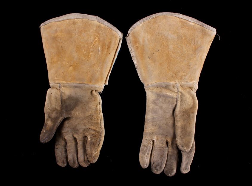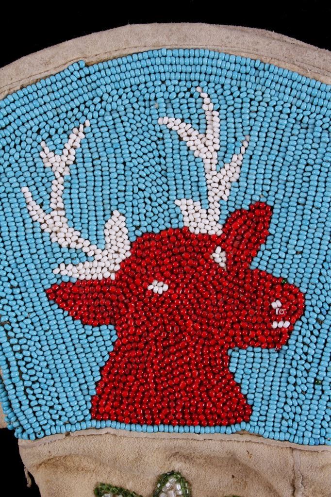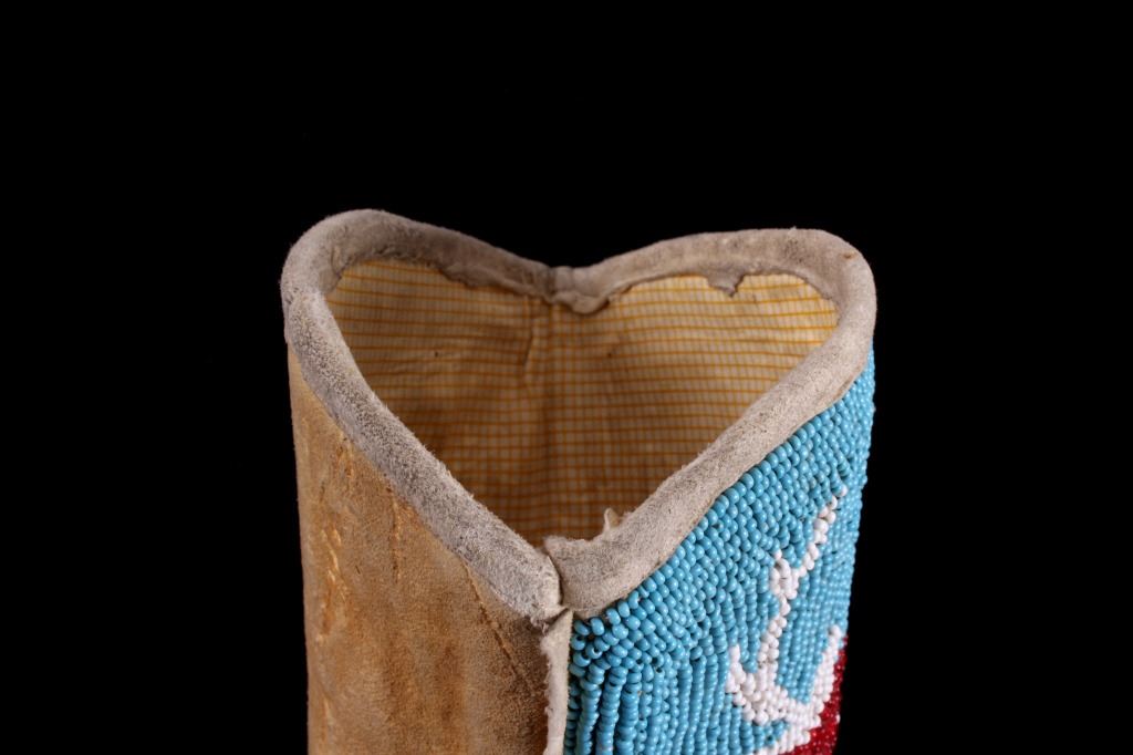For your consideration are these Wahakee Indian, beaded leather gauntlets, circa 1950's. The gauntlets show leather construction with a trade seed bead decoration in light blue, chalk white, and medium red beads. These gauntlets were traded to a woman in Brigham City, Utah and bought from the daughter of this B.C. woman, named Washakee, in the early 1950's. Washakie was a prominent leader of the Shoshone people during the mid-19th century. The condition of these gauntlets is good, with wear consistent with age and usage. The measurements of these gauntlets are 11 1/2" x 5 1/2" x 3/4".