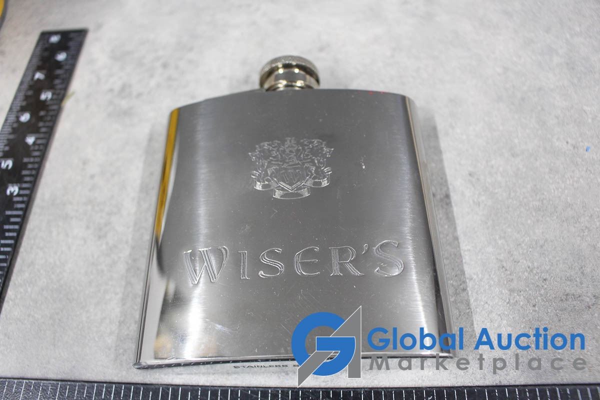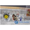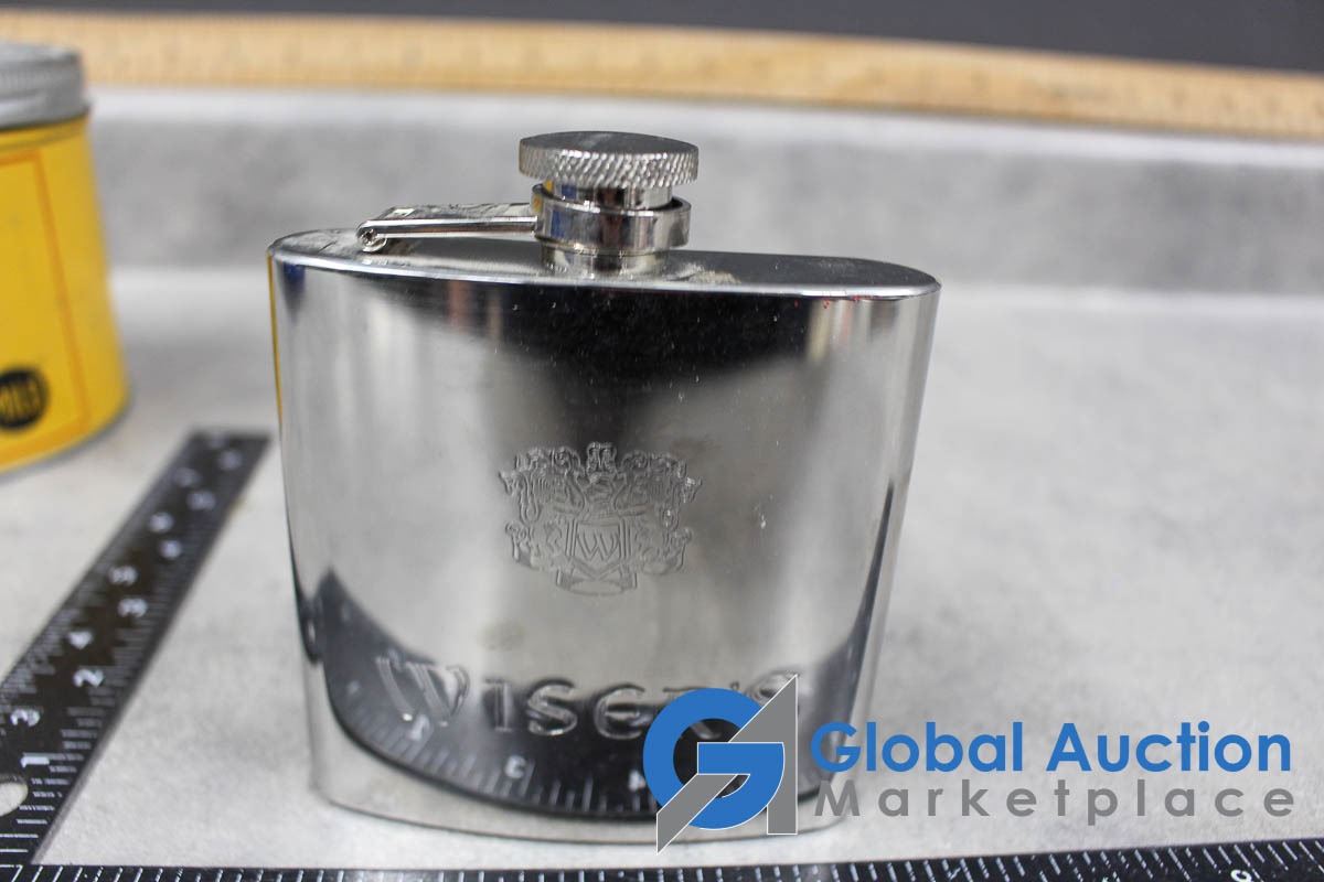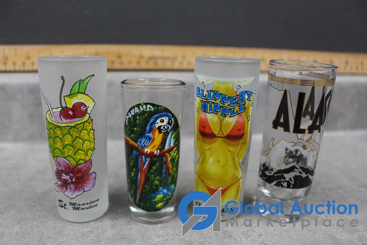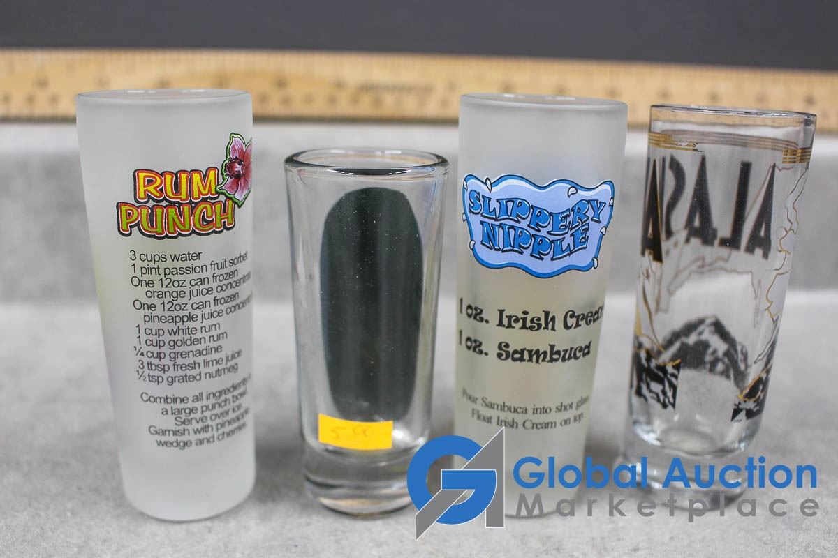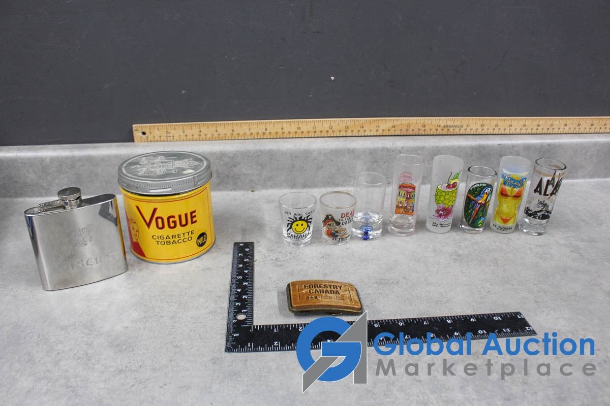 Shot Glass Collection, Wisers Flask, Wix Filters Coin Bank, etc