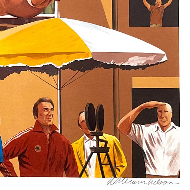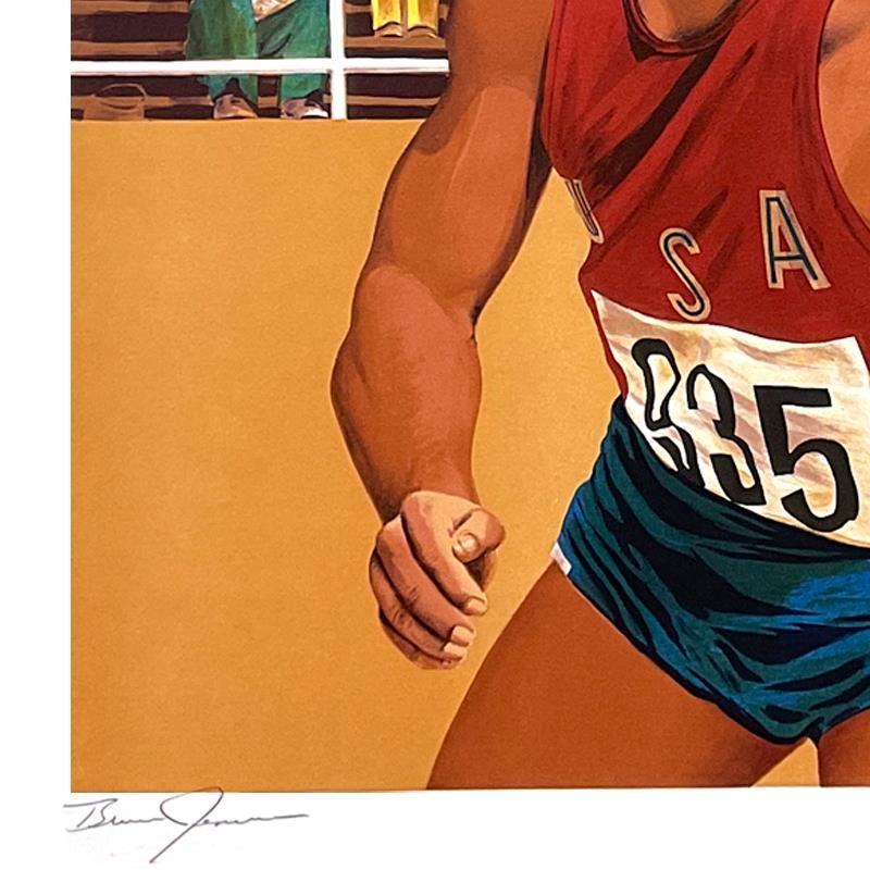 "Shot Put: Bruce Jenner" is a lithograph on paper, hand signed by William Nelson and Bruce Jenner. Includes Letter of Authenticity. Measures approx. 29" x 22" (border), 25" x 19" (image). ** Please note: This piece is not numbered. Also, there may be minor imperfections in the white border area but the piece is in overall good condition. **