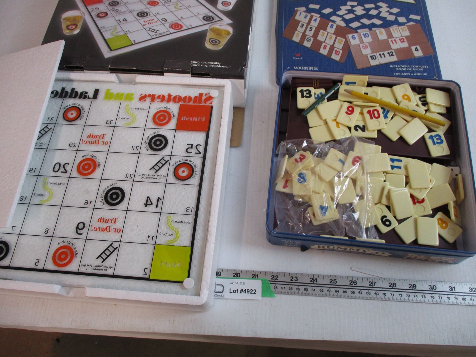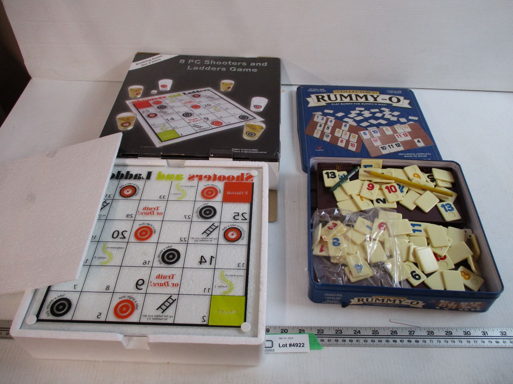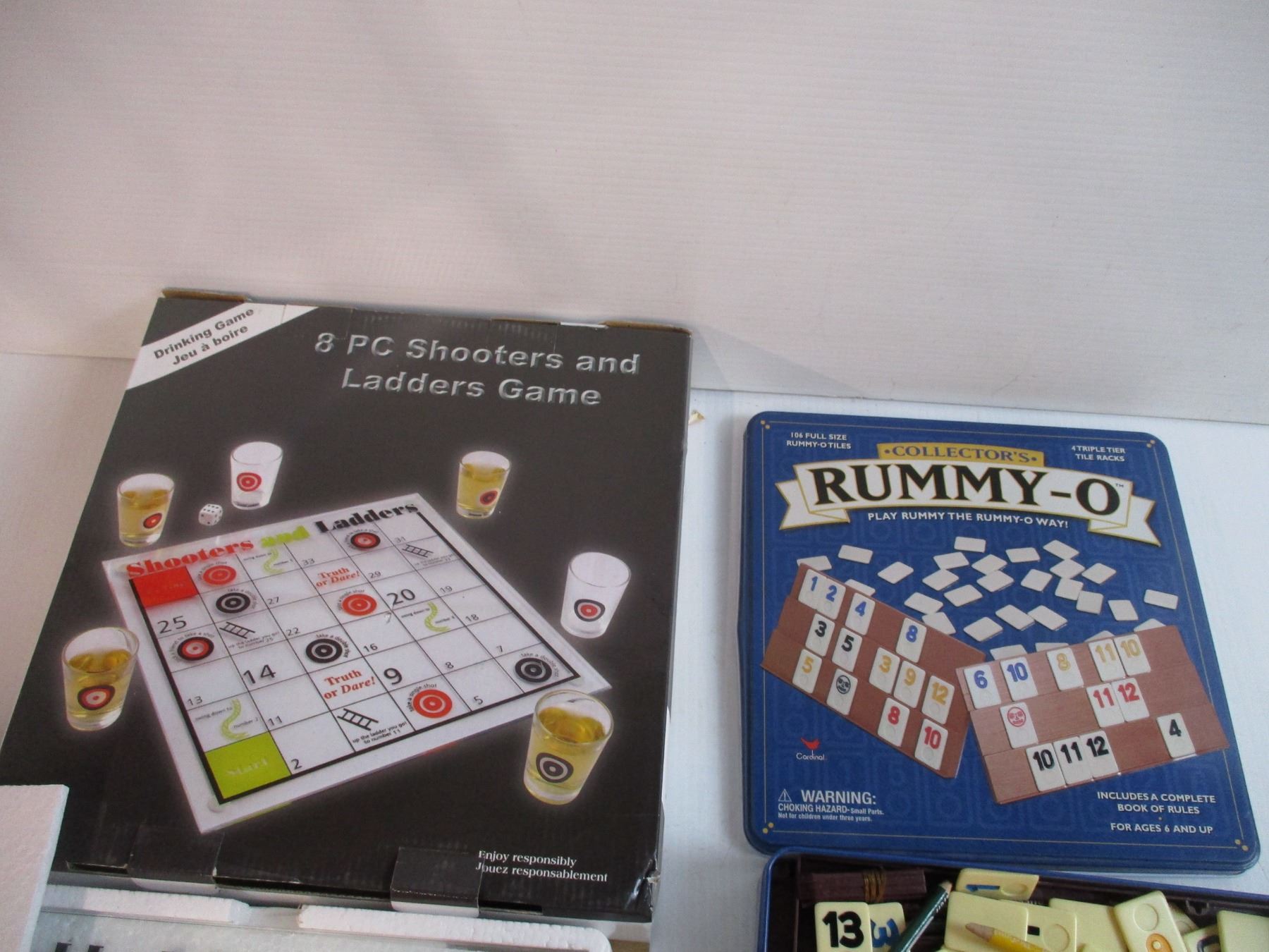 Shot glass snakes & ladders game with Rummy-O