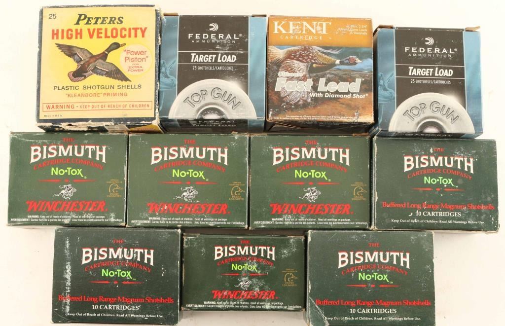 (4) Boxes of 12GA Winchester ammo (3) Boxes of 10GA Bismuth Ammo (3) Boxes of 20GA Ammo (1) Box of Collectable Peters 12GA