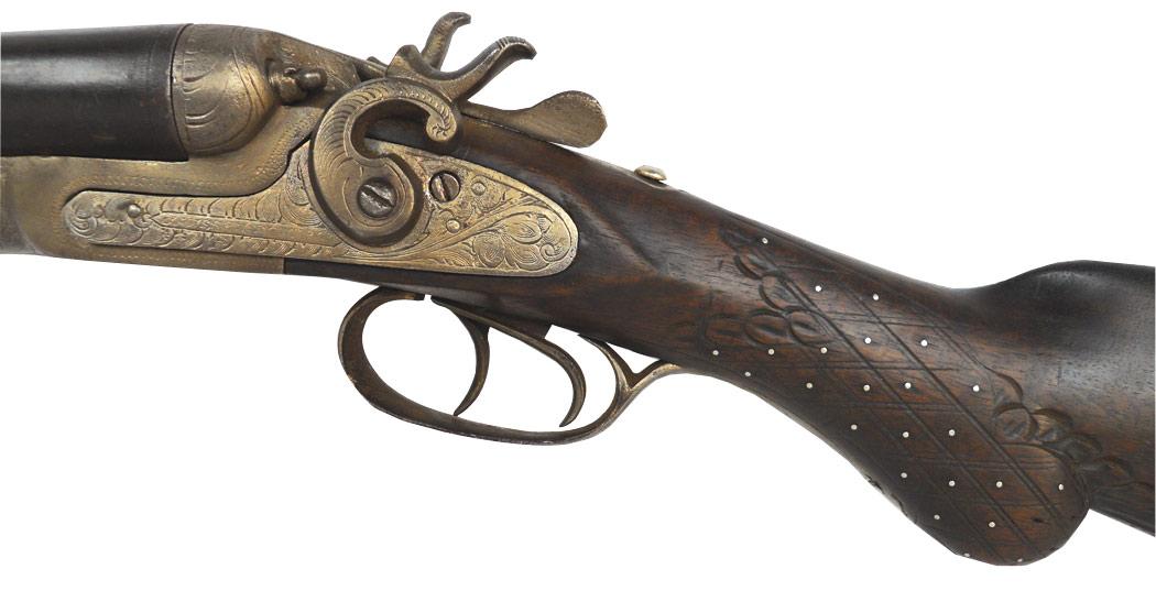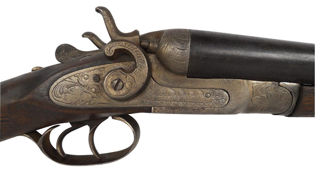 Shotgun, Belgian, Side by Side, 12 Ga., exposed hammers, Fair cond.