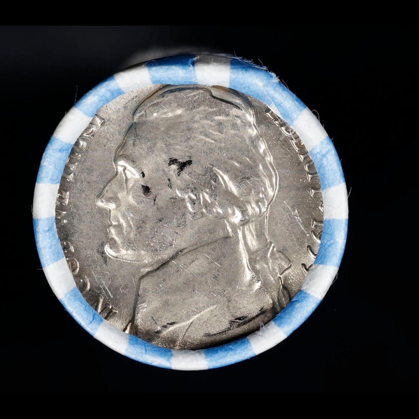 Shotgun Jefferson 5c roll, 1959-p 40 pcs Nickel Wrapper. A terrific Shotgun roll of unsearched Jefferson nickles. Most if not all coins should be gem or better