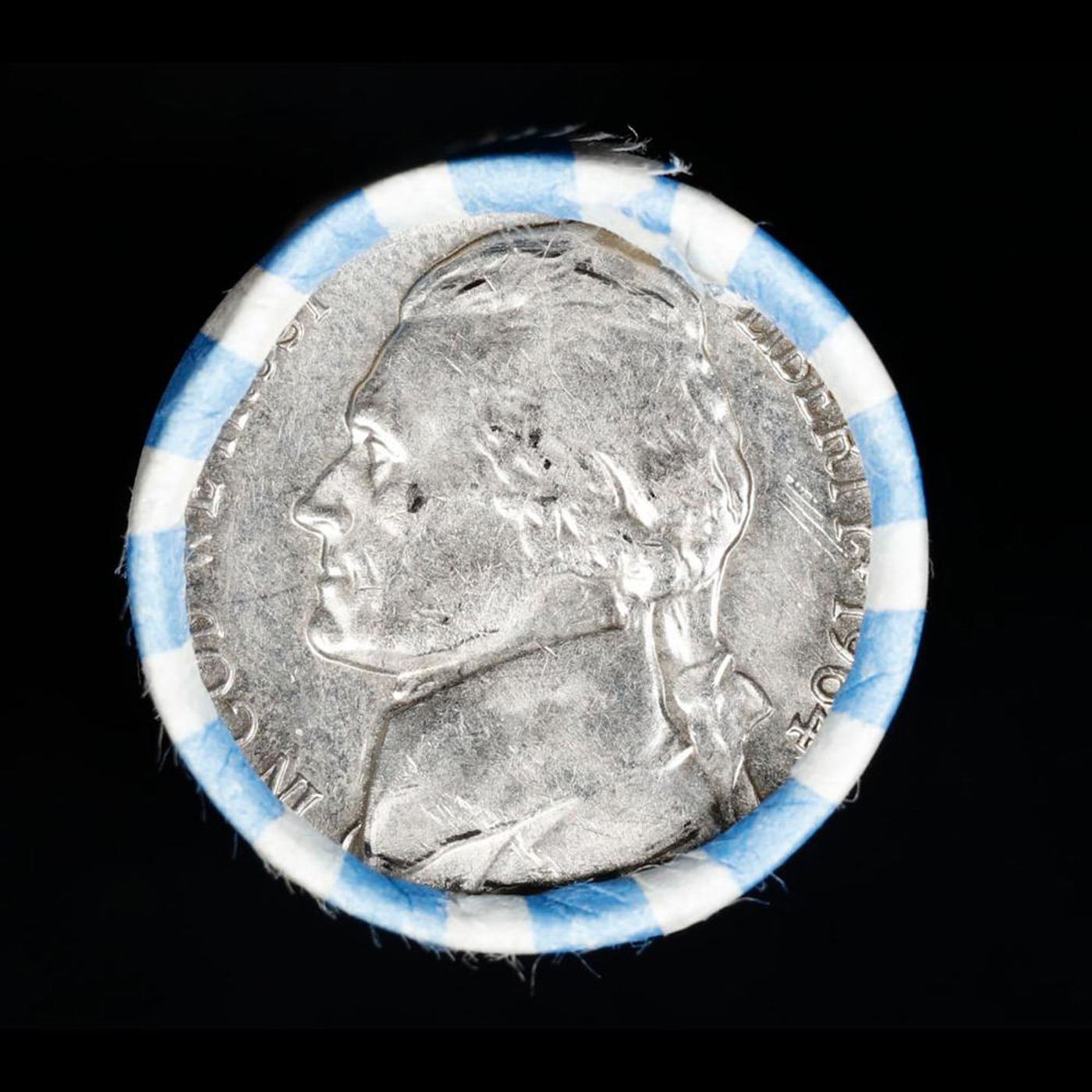 Shotgun Jefferson 5c roll, 1964-d 40 pcs Nickel Wrapper. A terrific Shotgun roll of unsearched Jefferson nickles. Most if not all coins should be gem or better