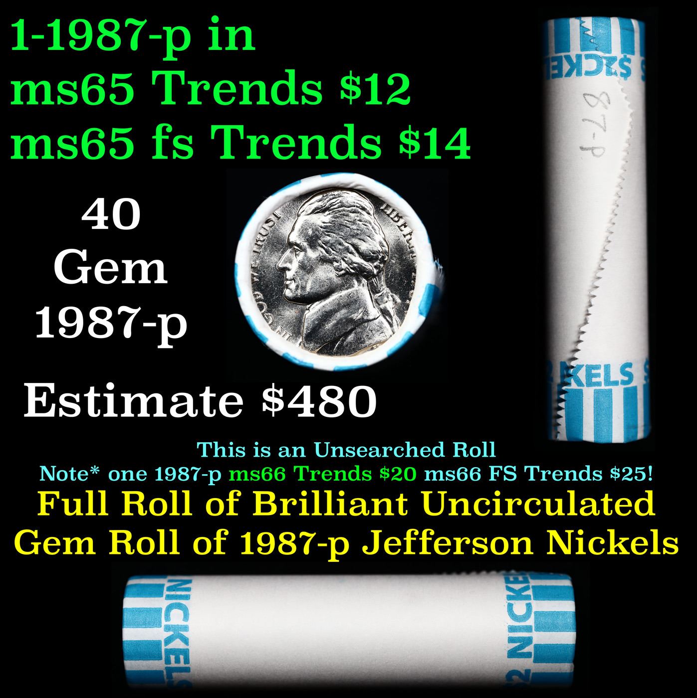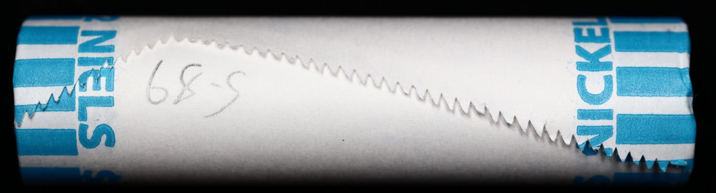 Shotgun Jefferson 5c roll, 1968-s 40 pcs Bank Wrapper. A terrific Shotgun roll of unsearched Jefferson nickles. Most if not all coins should be gem or better
