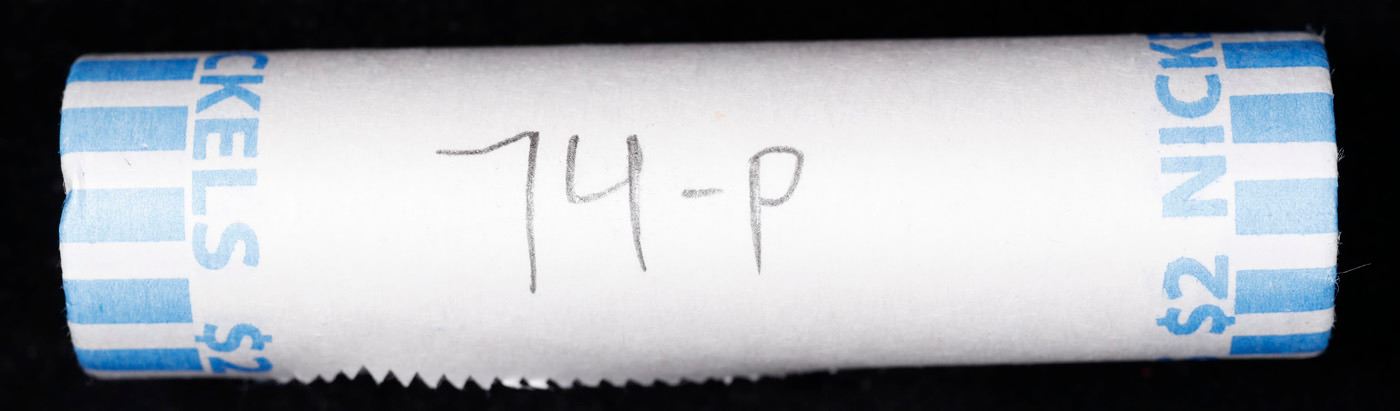 Shotgun Jefferson 5c roll, 1974-p 40 pcs Bank Wrapper. A terrific Shotgun roll of unsearched Jefferson nickles. Most if not all coins should be gem or better