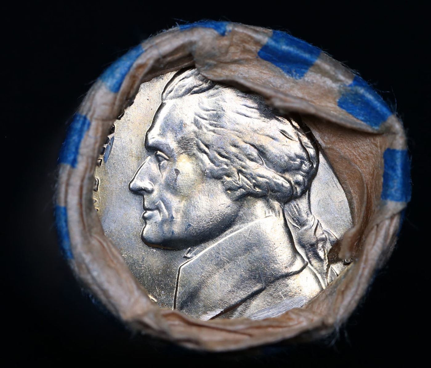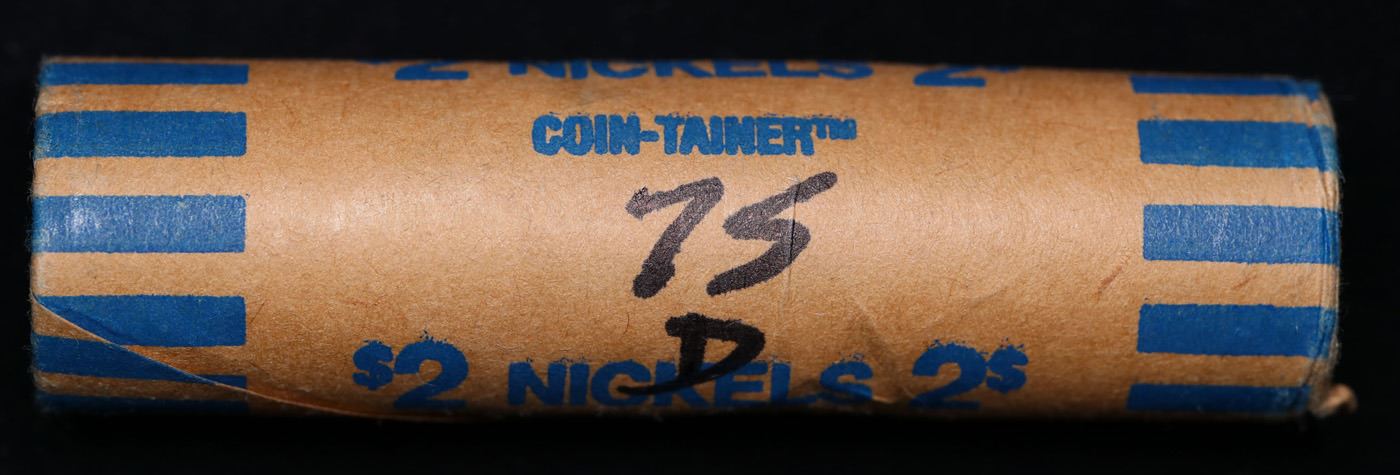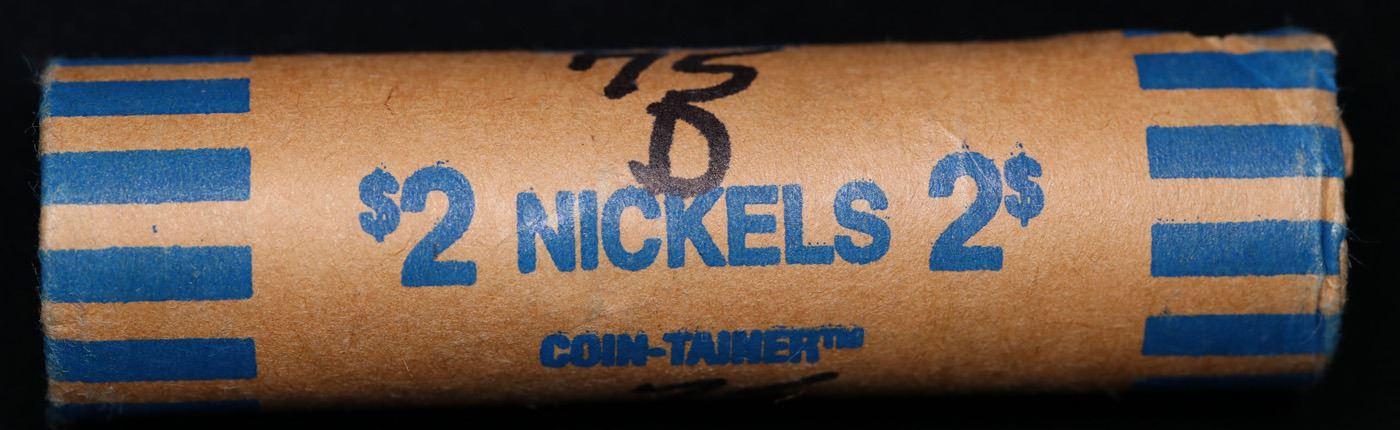 Shotgun Jefferson 5c roll, 1975-d 40 pcs Cointainer Wrapper. A terrific Shotgun roll of unsearched Jefferson nickles. Most if not all coins should be gem or better