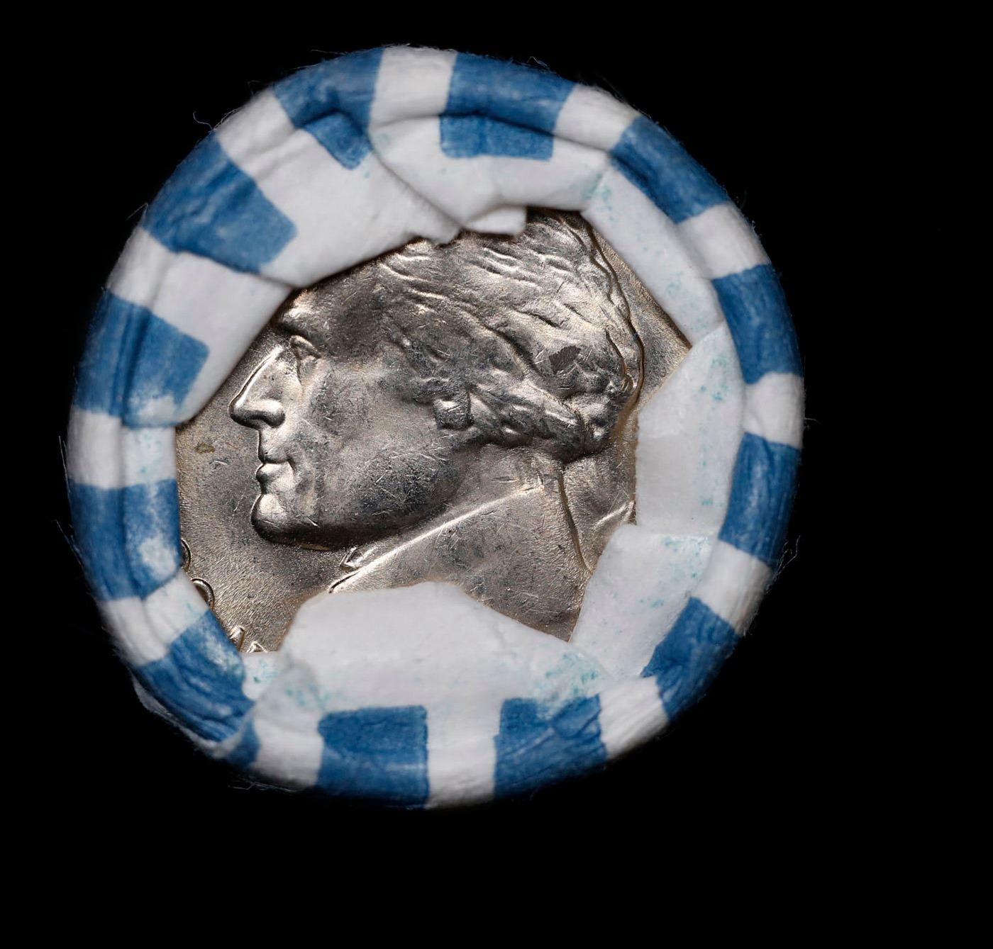 Shotgun Jefferson 5c roll, 1976-d 40 pcs SealStrong Wrapper. A terrific Shotgun roll of unsearched Jefferson nickles. Most if not all coins should be gem or better