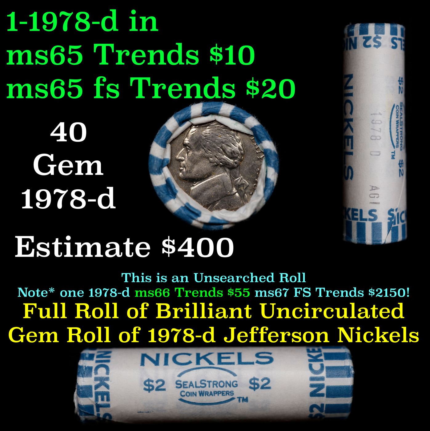 Shotgun Jefferson 5c roll, 1976-d 40 pcs String & Son Wrapper. A terrific Shotgun roll of unsearched Jefferson nickles. Most if not all coins should be gem or better