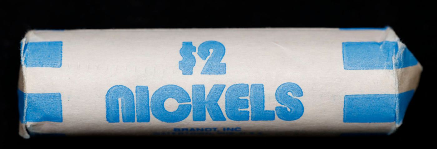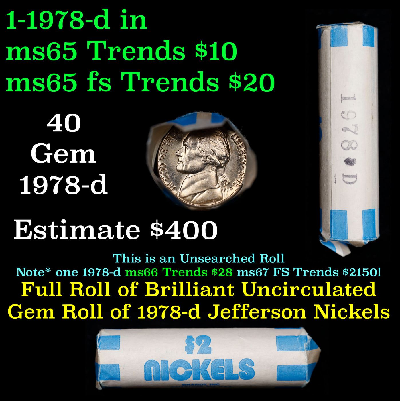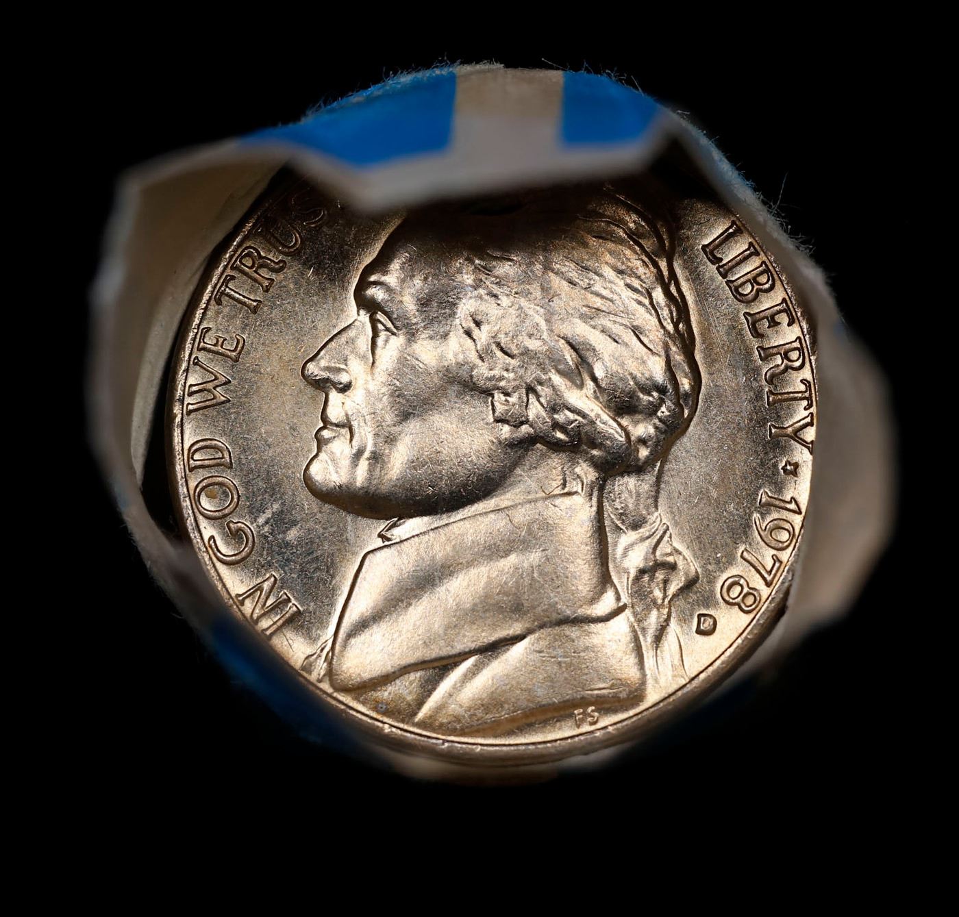 Shotgun Jefferson 5c roll, 1978-d 40 pcs Brandt Wrapper. A terrific Shotgun roll of unsearched Jefferson nickles. Most if not all coins should be gem or better