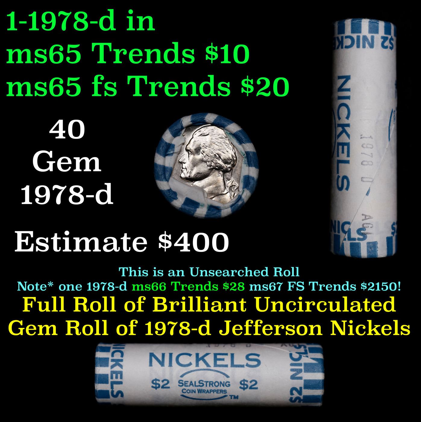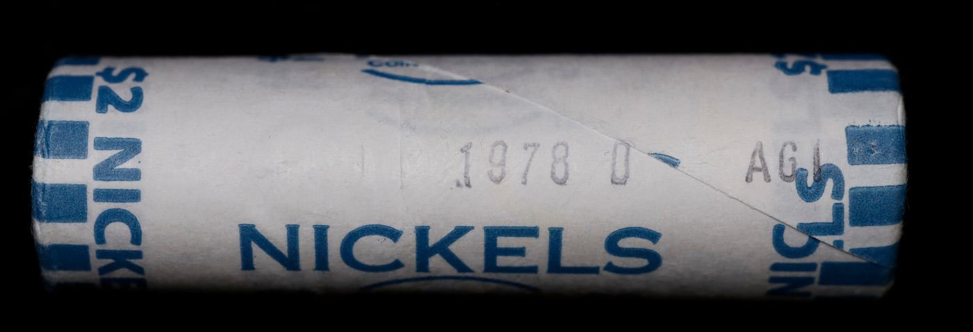 Shotgun Jefferson 5c roll, 1978-d 40 pcs SealStrong Wrapper. A terrific Shotgun roll of unsearched Jefferson nickles. Most if not all coins should be gem or better