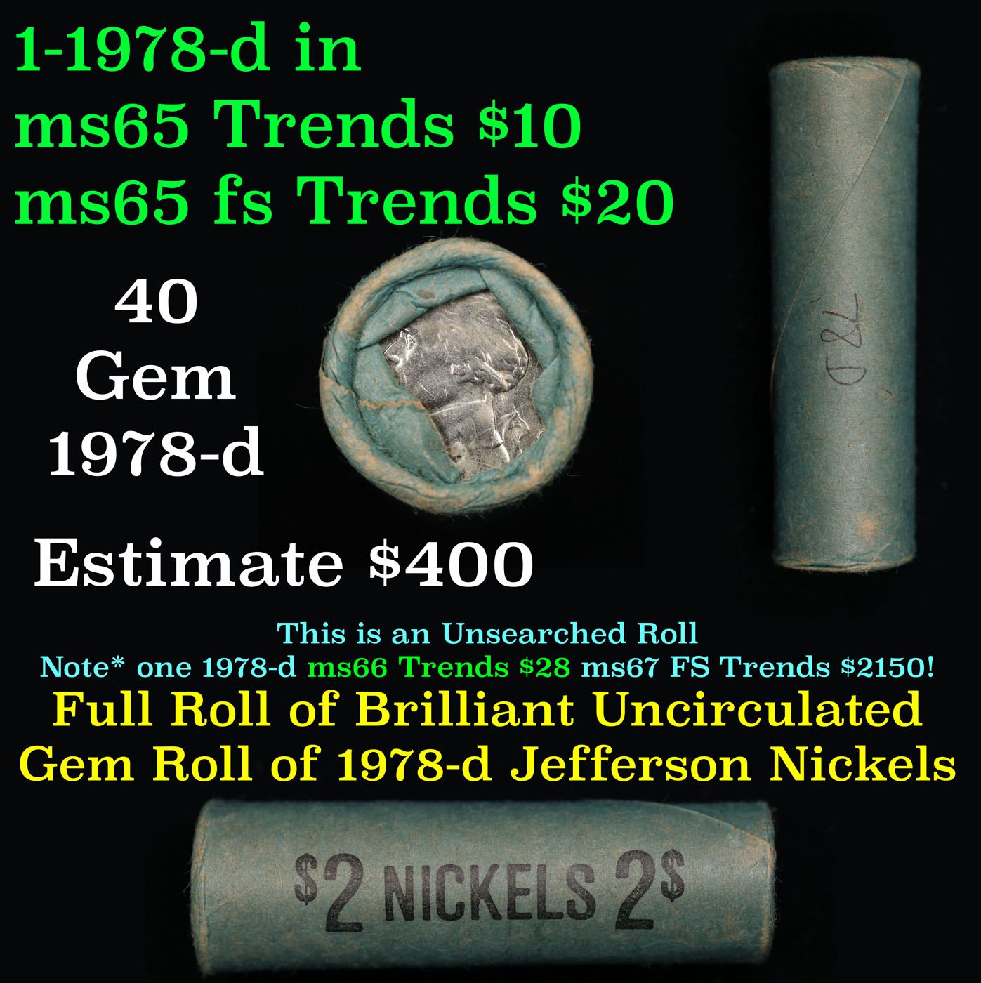 Shotgun Jefferson 5c roll, 1978-d 40 pcs Vintage Nickel Wrapper. A terrific Shotgun roll of unsearched Jefferson nickles. Most if not all coins should be gem or better