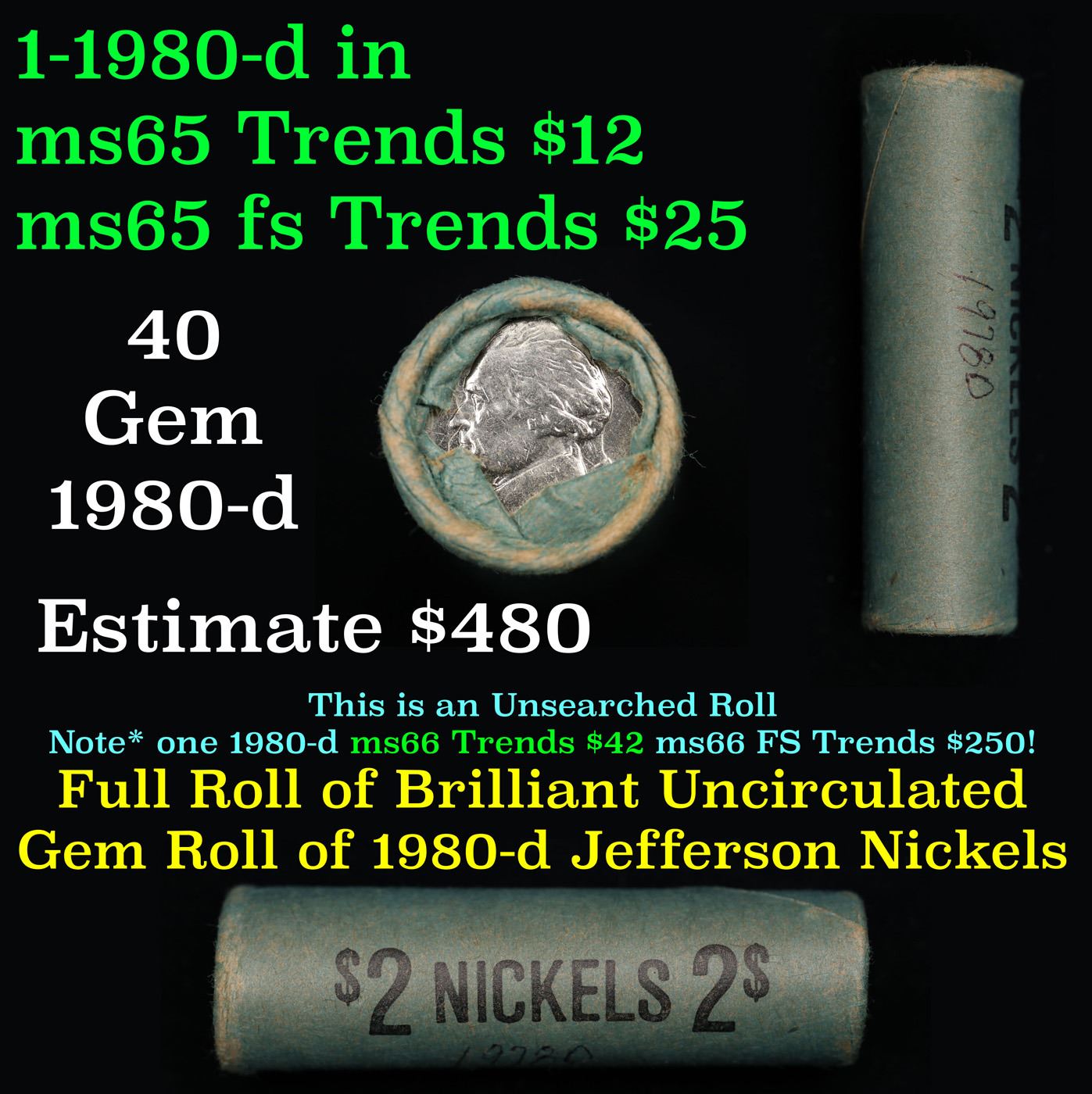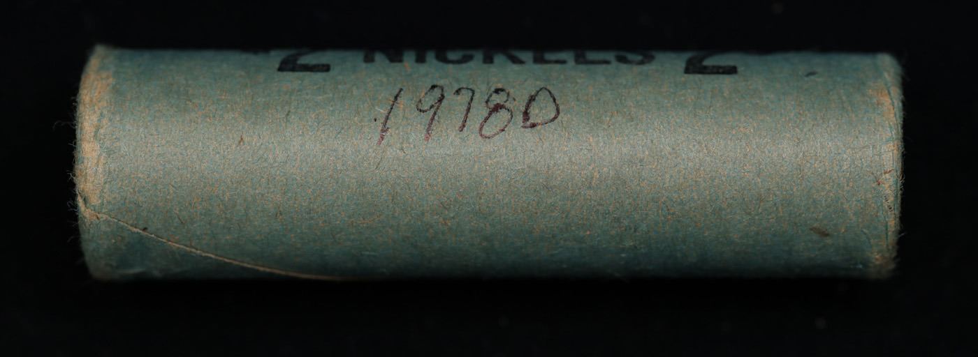 Shotgun Jefferson 5c roll, 1978-d 40 pcs Vintage Nickel Wrapper. A terrific Shotgun roll of unsearched Jefferson nickles. Most if not all coins should be gem or better