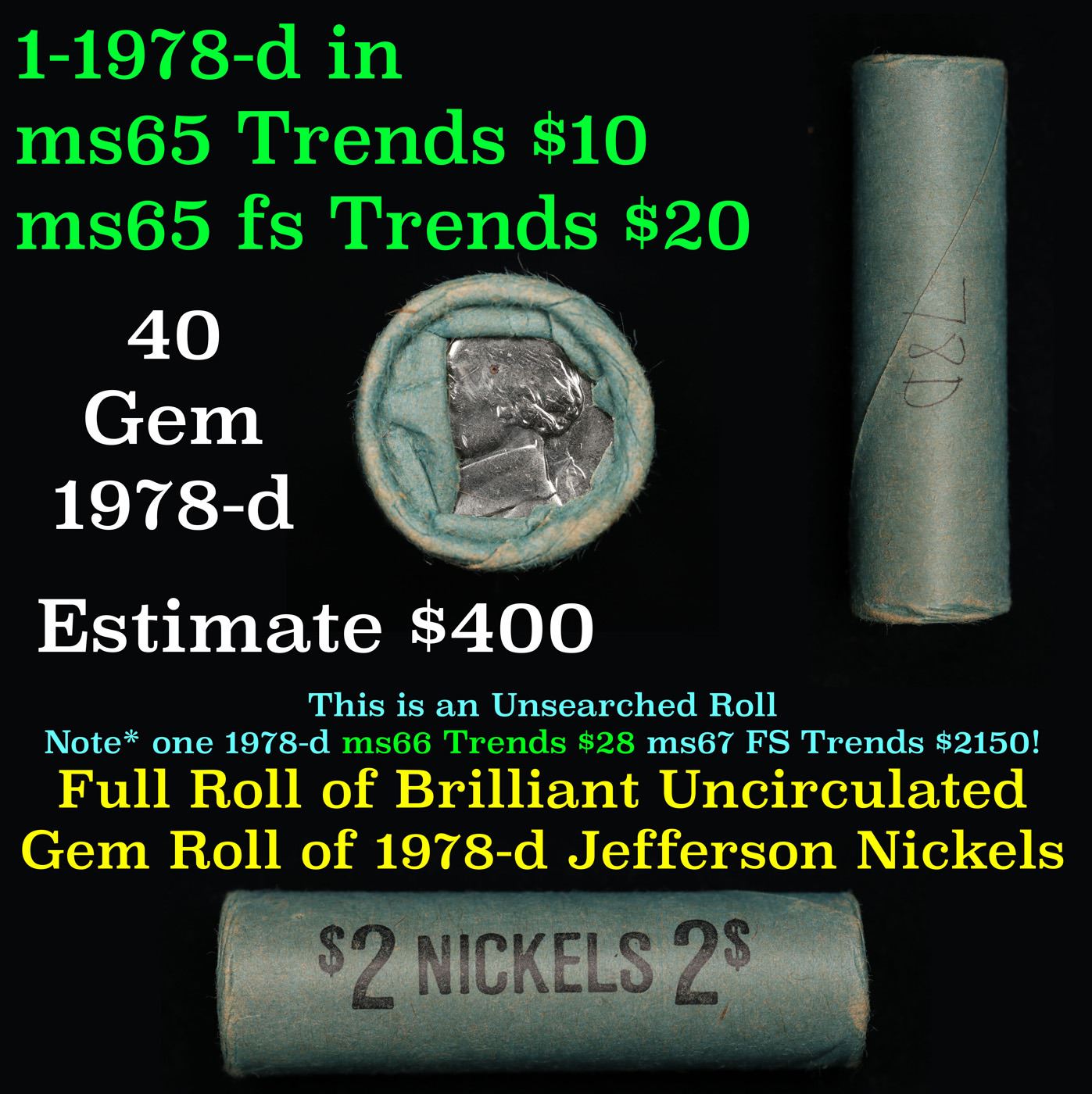 Shotgun Jefferson 5c roll, 1978-d 40 pcs Vintage Nickel Wrapper. A terrific Shotgun roll of unsearched Jefferson nickles. Most if not all coins should be gem or better