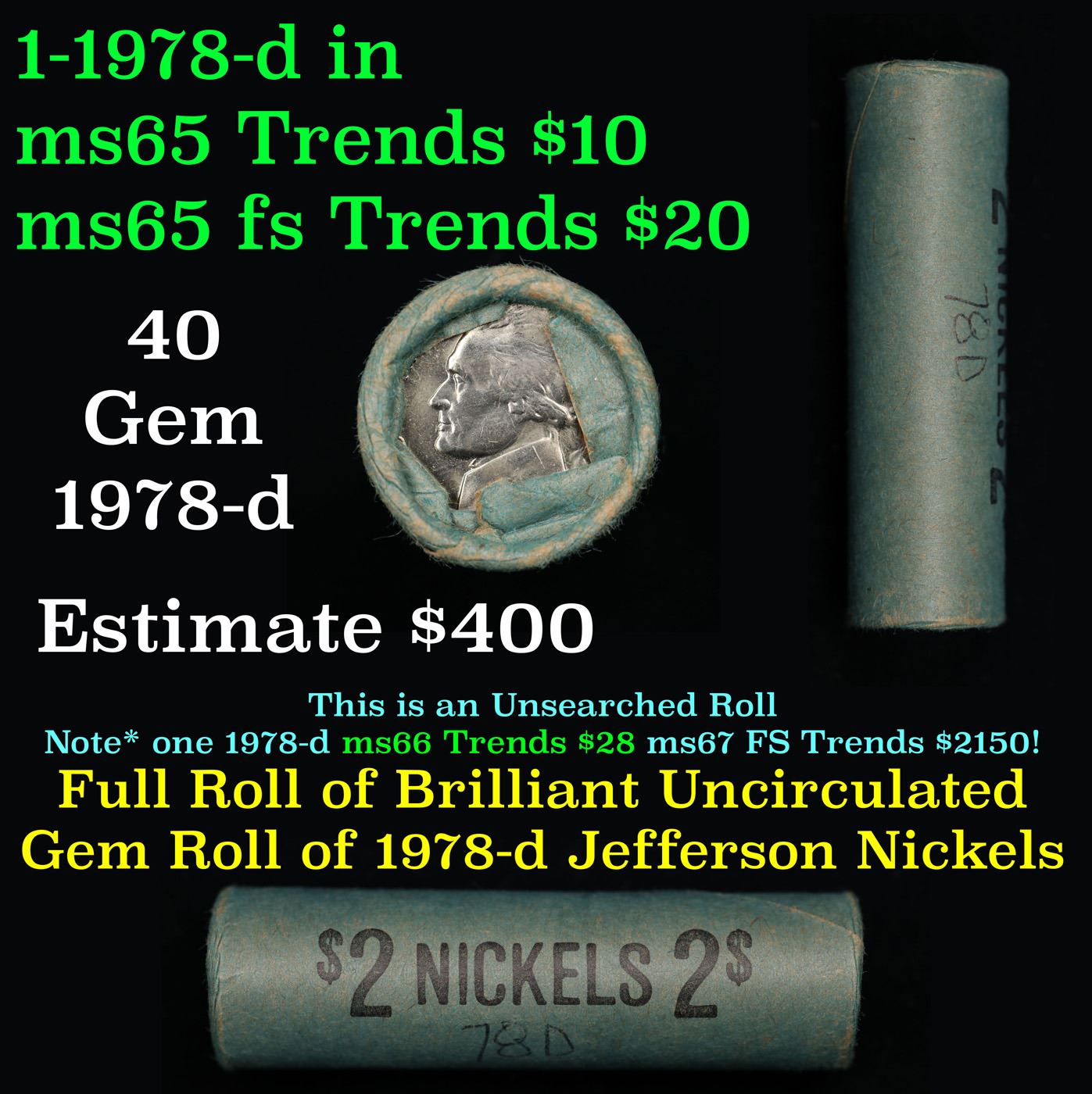 Shotgun Jefferson 5c roll, 1978-d 40 pcs Vintage Nickel Wrapper. A terrific Shotgun roll of unsearched Jefferson nickles. Most if not all coins should be gem or better