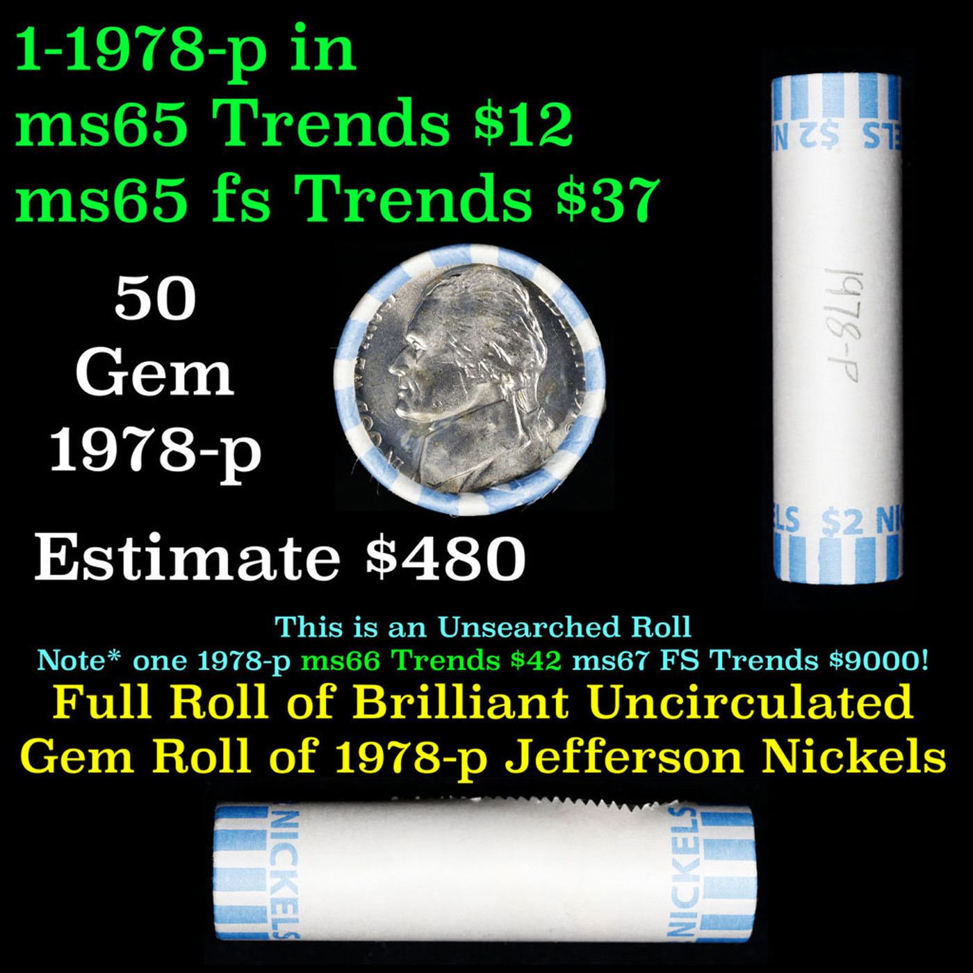 Shotgun Jefferson 5c roll, 1978-p 40 pcs Nickel Wrapper. A terrific Shotgun roll of unsearched Jefferson nickles. Most if not all coins should be gem or better