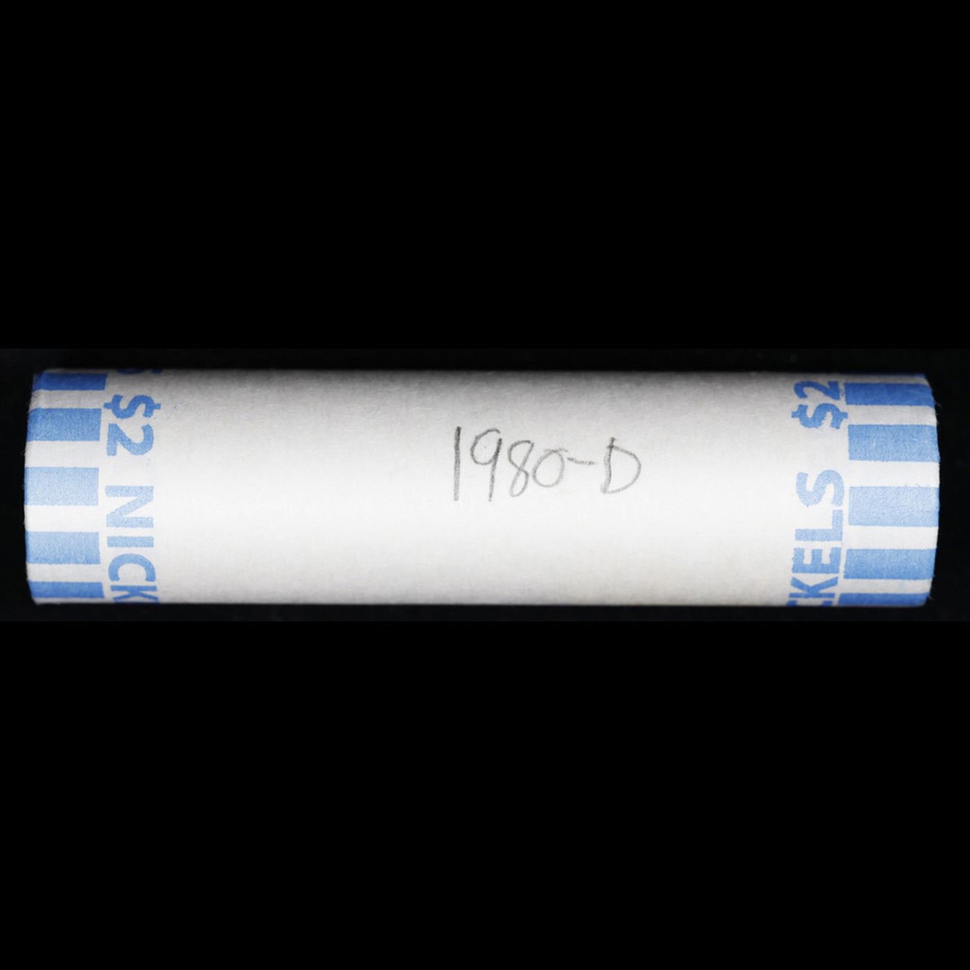 Shotgun Jefferson 5c roll, 1980-d 40 pcs Bank Wrapper. A terrific Shotgun roll of unsearched Jefferson nickles. Most if not all coins should be gem or better