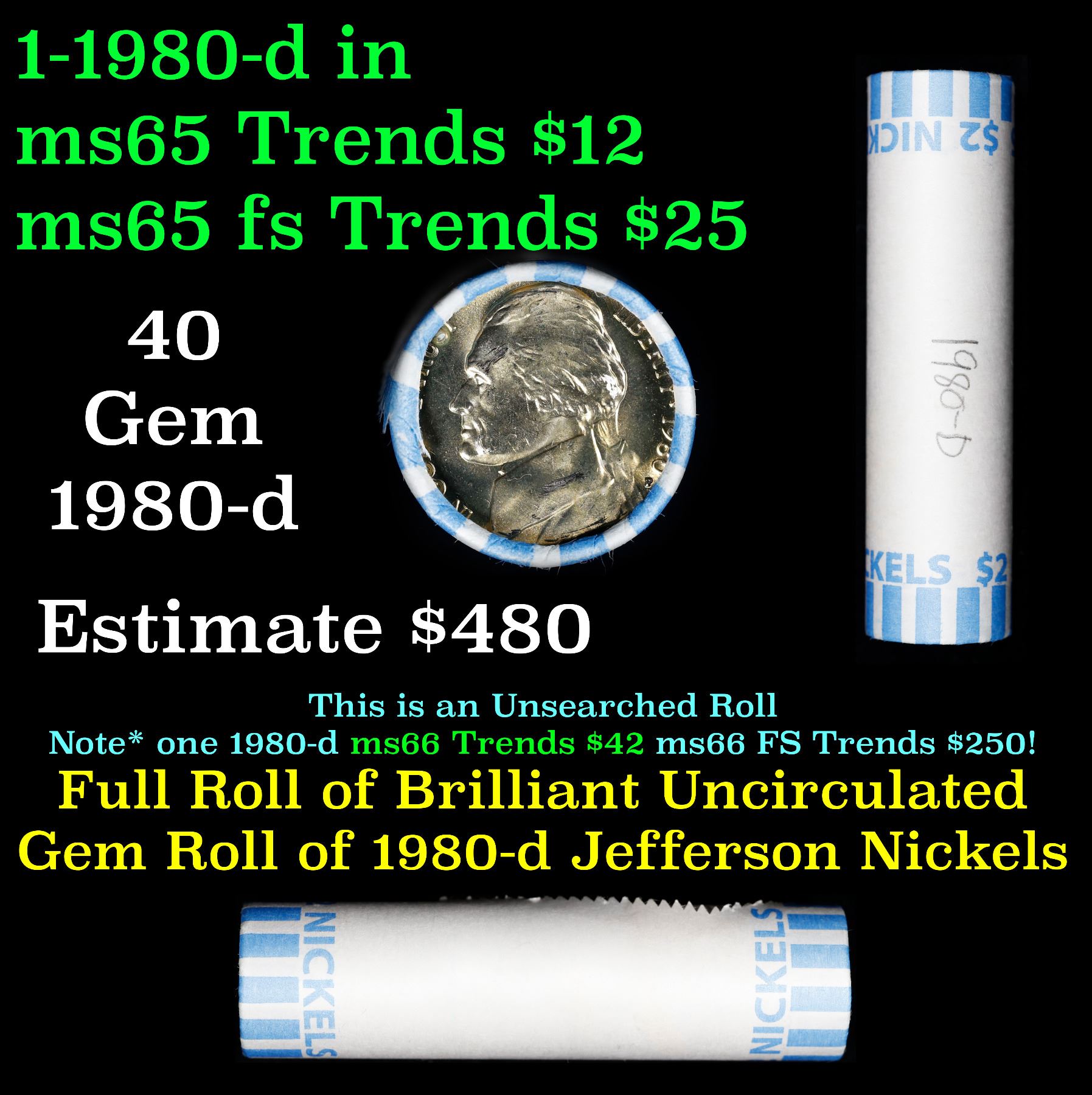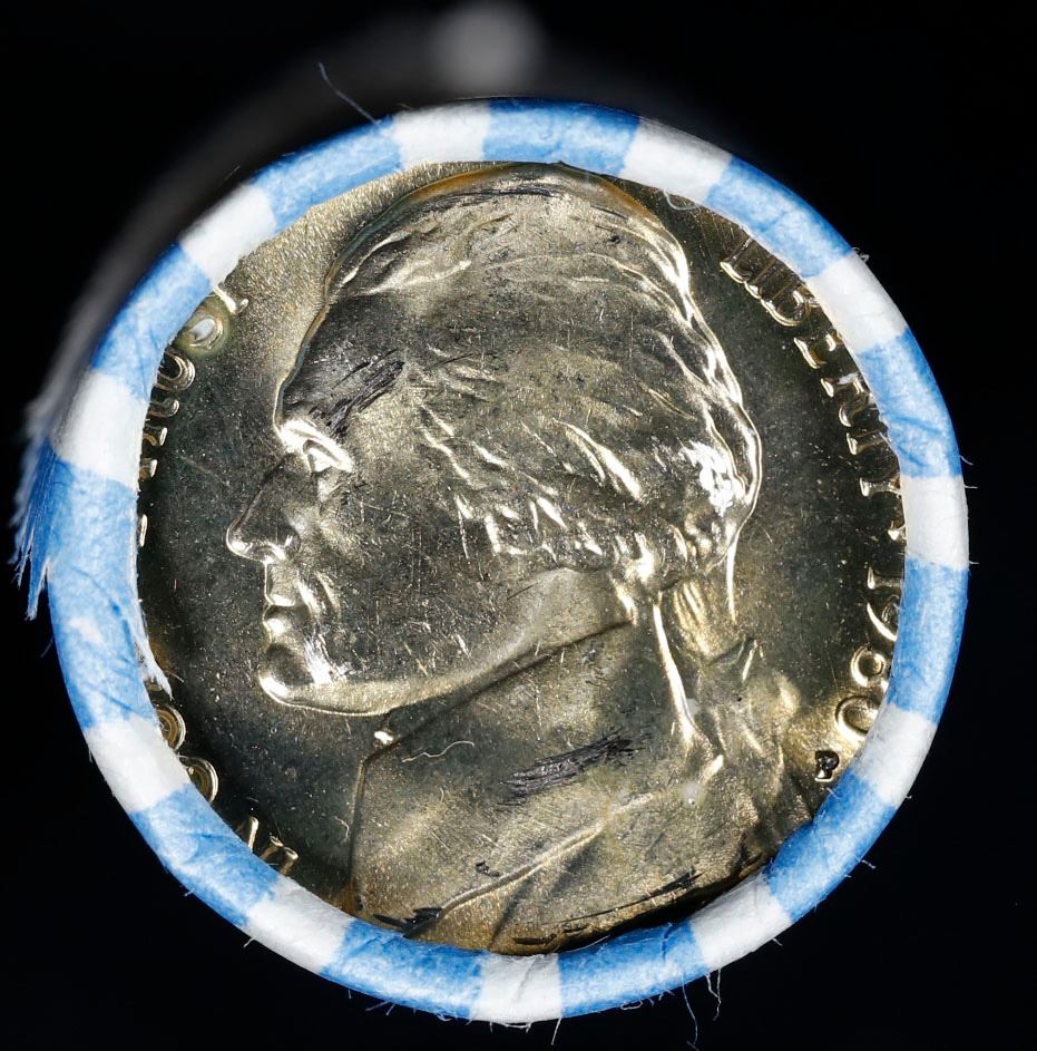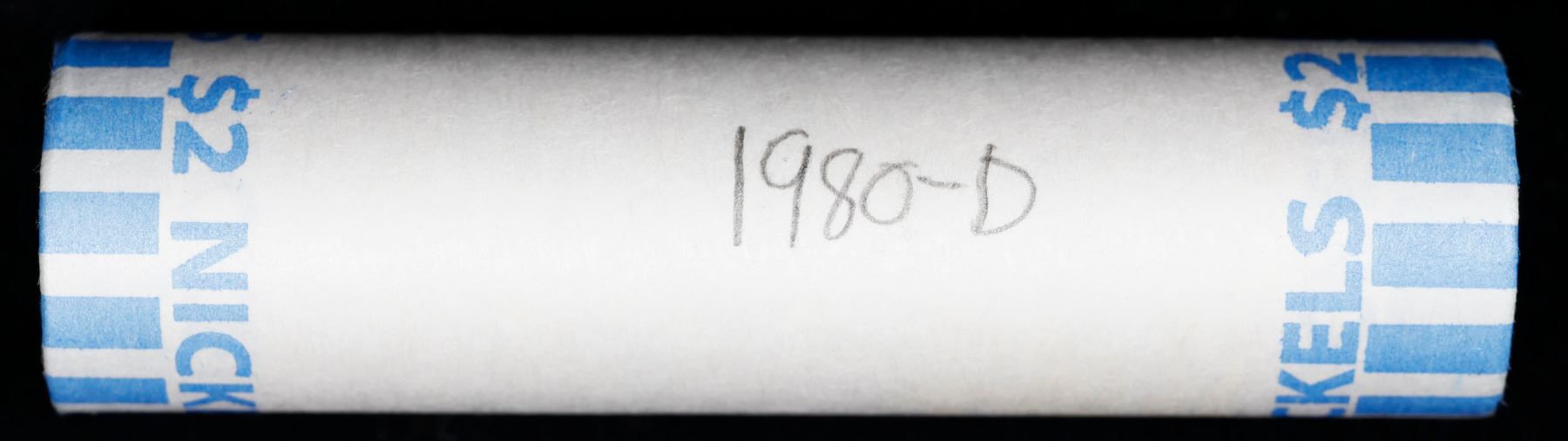 Shotgun Jefferson 5c roll, 1980-d 40 pcs Bank Wrapper. A terrific Shotgun roll of unsearched Jefferson nickles. Most if not all coins should be gem or better