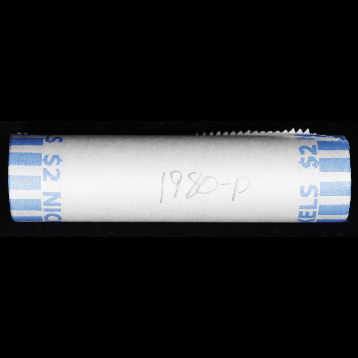 Shotgun Jefferson 5c roll, 1980-p 40 pcs Bank Wrapper. A terrific Shotgun roll of unsearched Jefferson nickles. Most if not all coins should be gem or better
