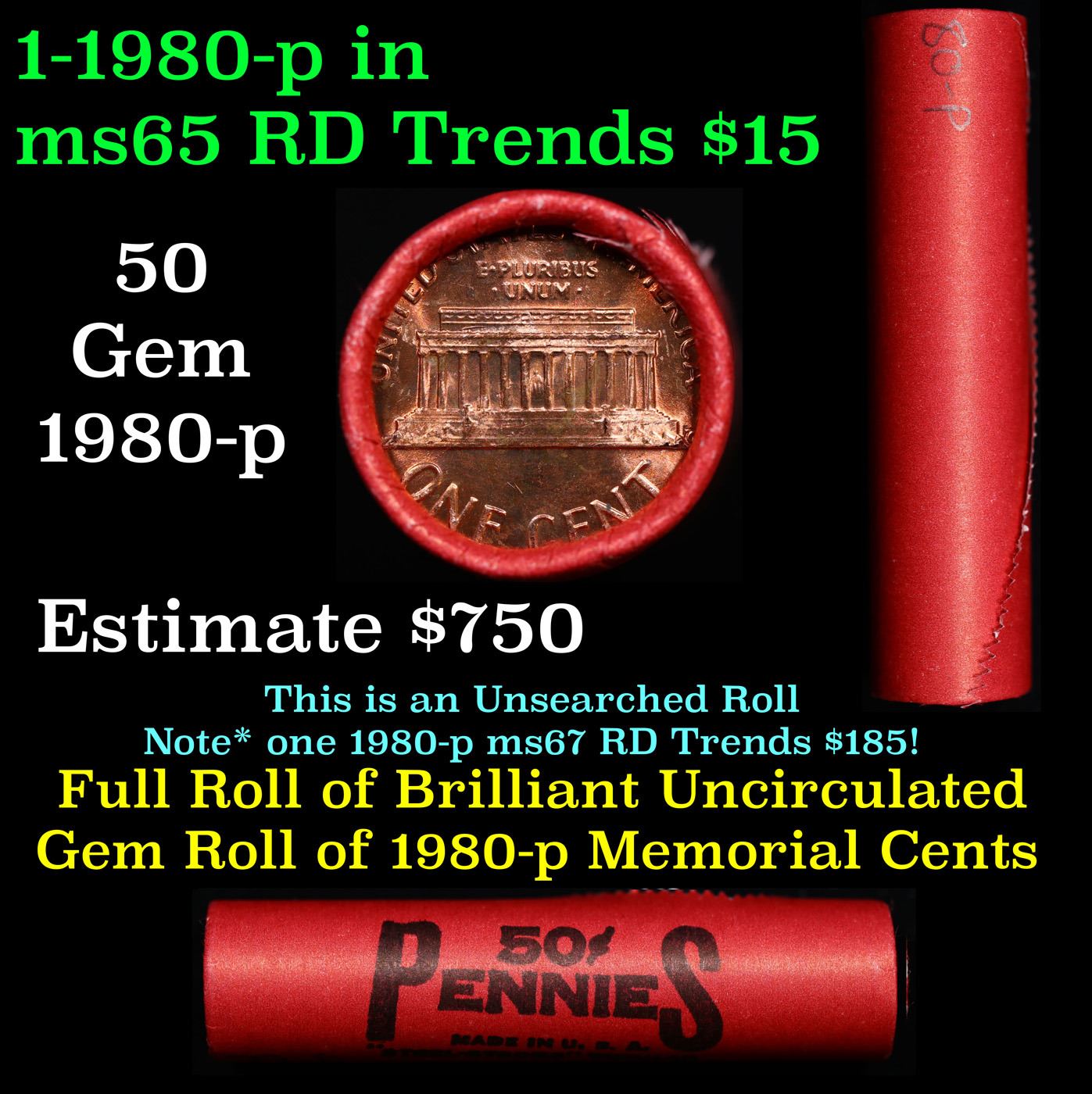Shotgun Jefferson 5c roll, 1980-p 40 pcs Steel Strong Wrapper. A terrific Shotgun roll of unsearched Jefferson nickles. Most if not all coins should be gem or better