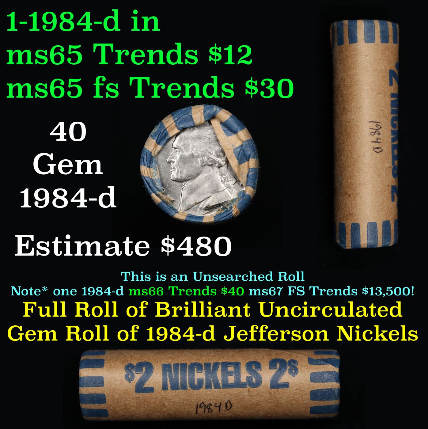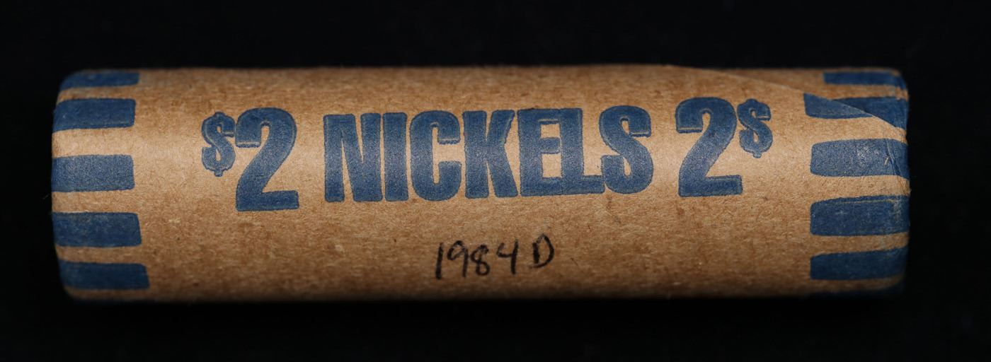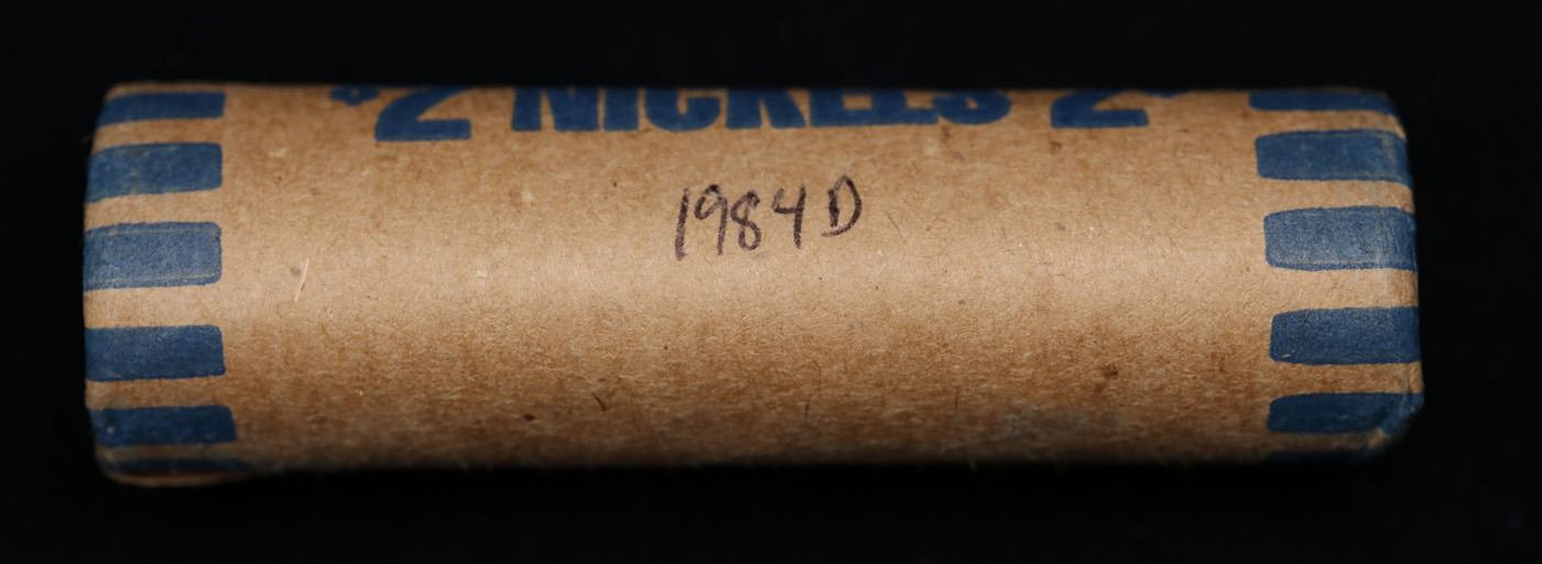 Shotgun Jefferson 5c roll, 1984-d 40 pcs Brandt Nickel Wrapper. A terrific Shotgun roll of unsearched Jefferson nickles. Most if not all coins should be gem or better