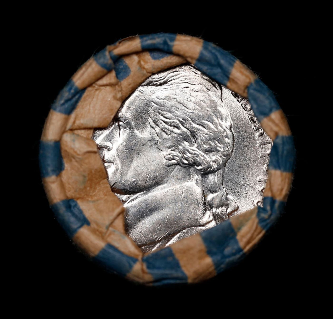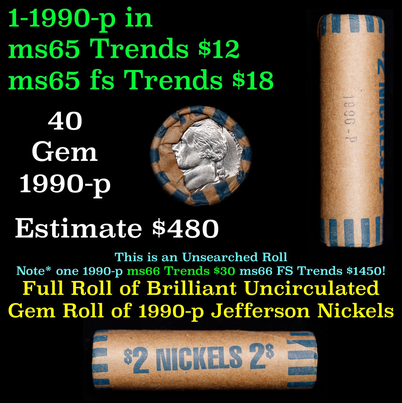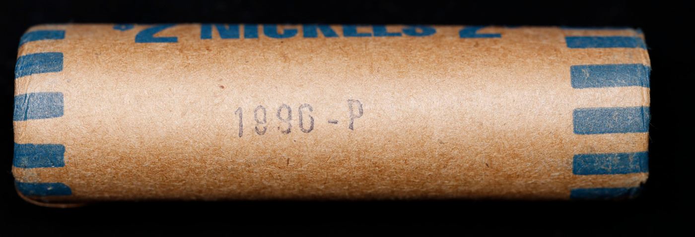 Shotgun Jefferson 5c roll, 1990-p 40 pcs Vintage Bank Wrapper. A terrific Shotgun roll of unsearched Jefferson nickles. Most if not all coins should be gem or better