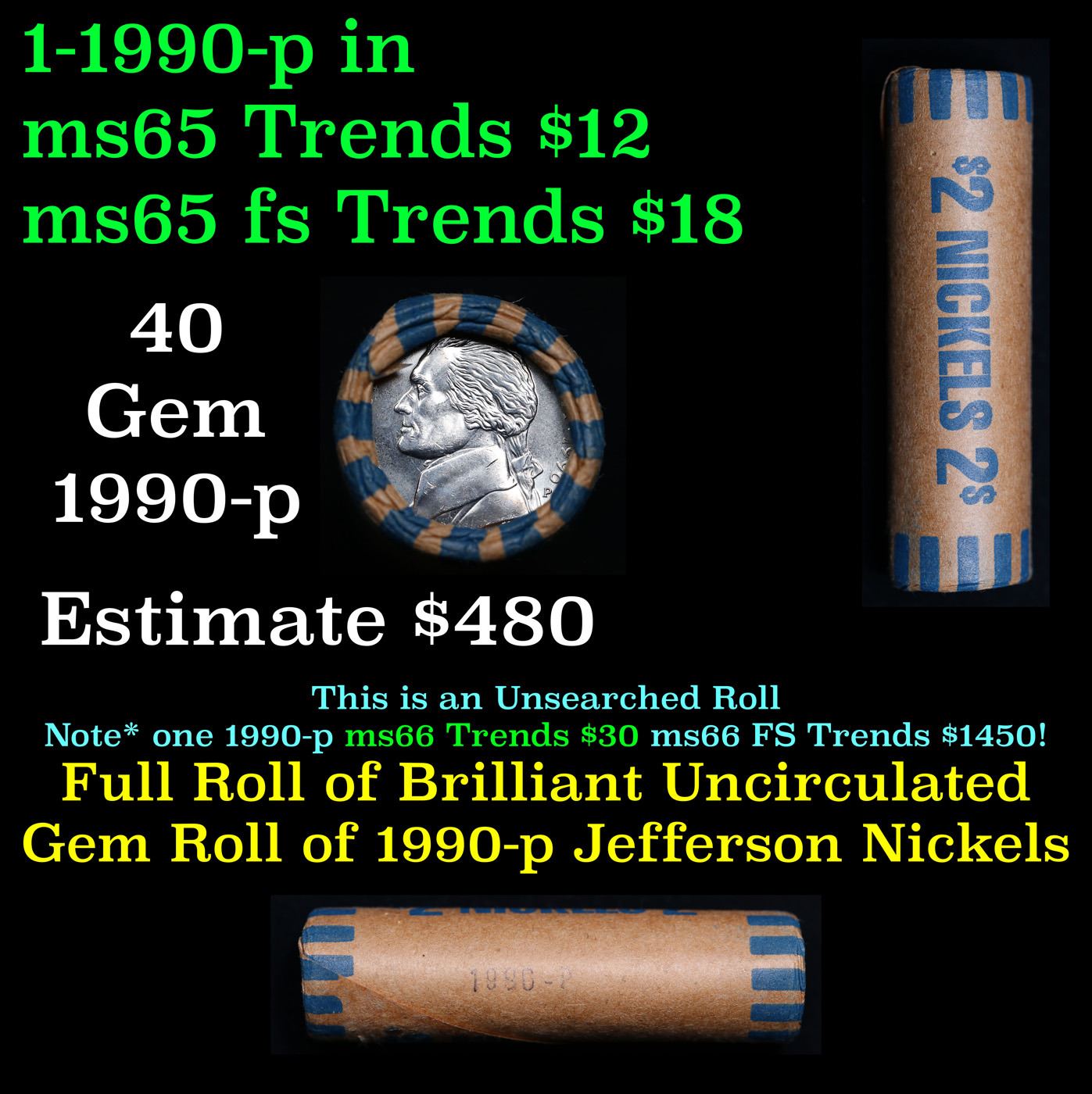 Shotgun Jefferson 5c roll, 1996-p 40 pcs Vintage Bank Wrapper. A terrific Shotgun roll of unsearched Jefferson nickles. Most if not all coins should be gem or better