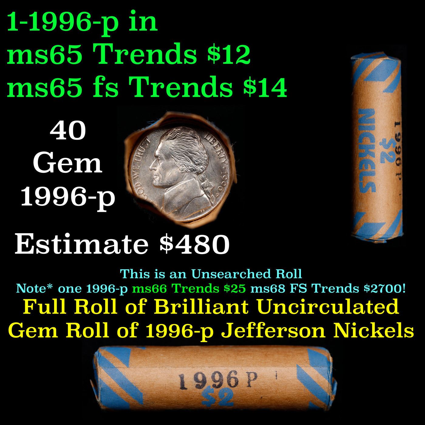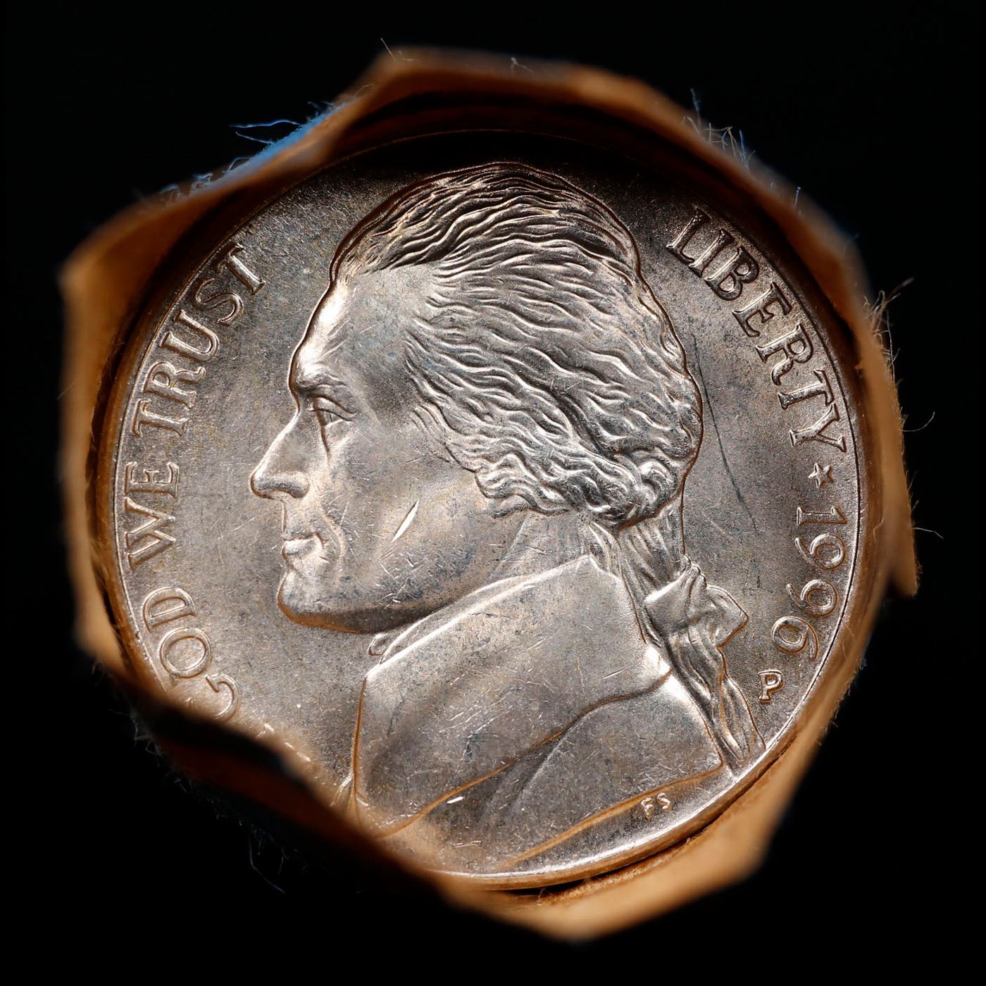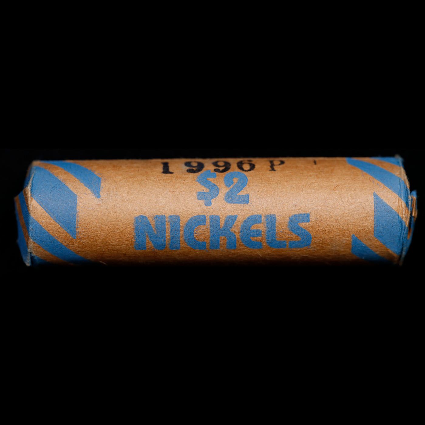 Shotgun Jefferson 5c roll, 1996-p 40 pcs Vintage Bank Wrapper. A terrific Shotgun roll of unsearched Jefferson nickles. Most if not all coins should be gem or better
