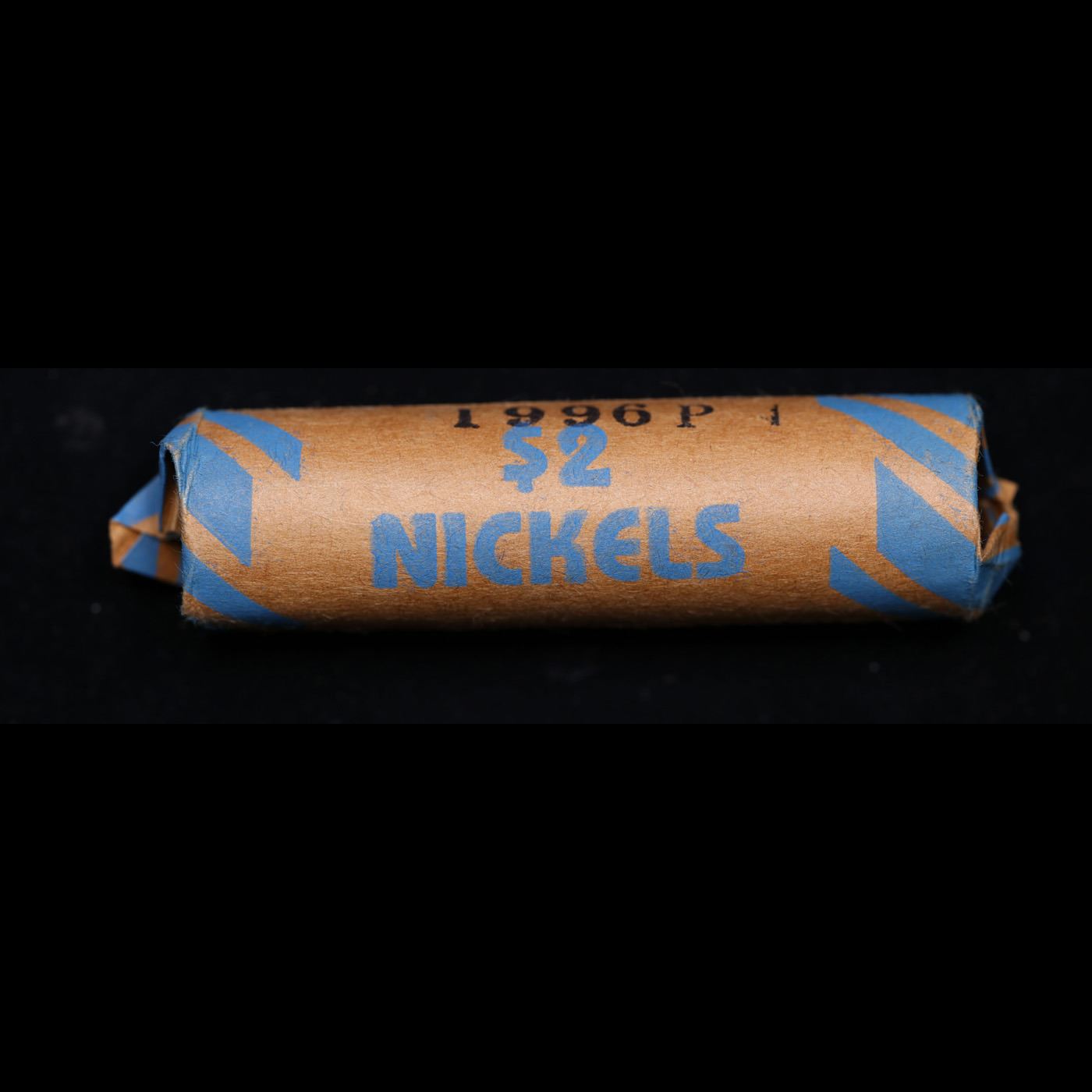 Shotgun Jefferson 5c roll, 1996-p 40 pcs Vintage Bank Wrapper. A terrific Shotgun roll of unsearched Jefferson nickles. Most if not all coins should be gem or better