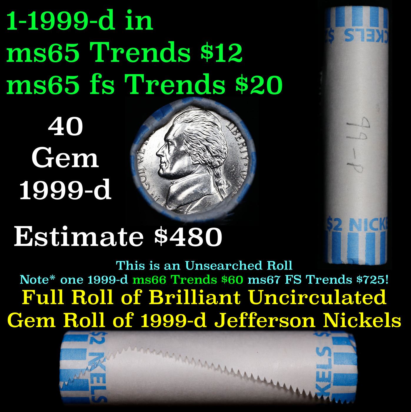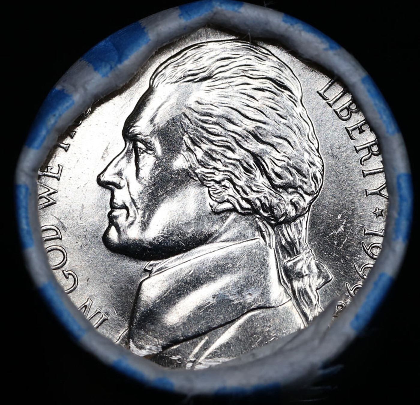 Shotgun Jefferson 5c roll, 1999-p 40 pcs Bank Wrapper. A terrific Shotgun roll of unsearched Jefferson nickles. Most if not all coins should be gem or better