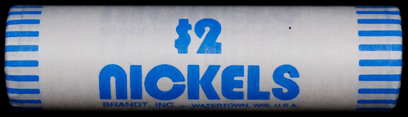Shotgun Jefferson 5c roll, 1999-p 40 pcs Brandt Wrapper. A terrific Shotgun roll of unsearched Jefferson nickles. Most if not all coins should be gem or better