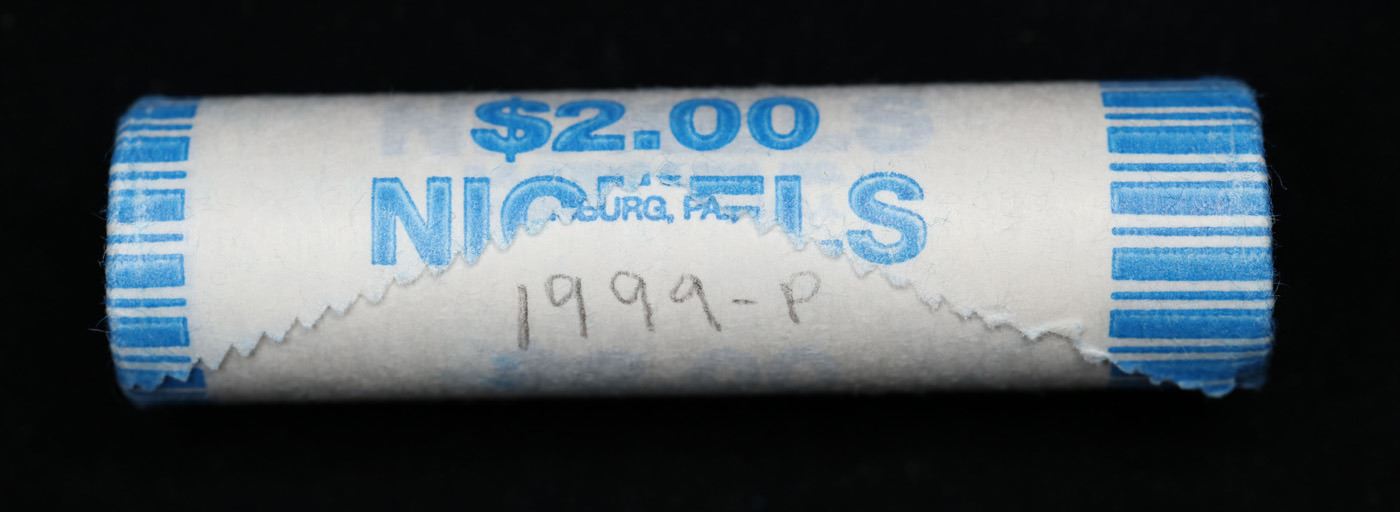 Shotgun Jefferson 5c roll, 1999-p 40 pcs String & Son Wrapper. A terrific Shotgun roll of unsearched Jefferson nickles. Most if not all coins should be gem or better