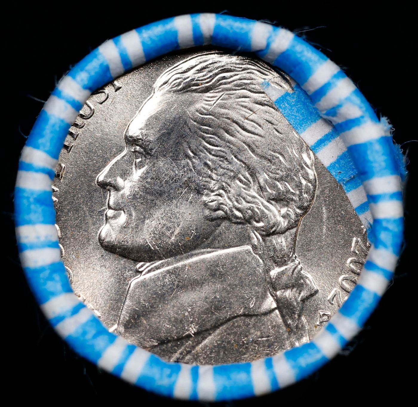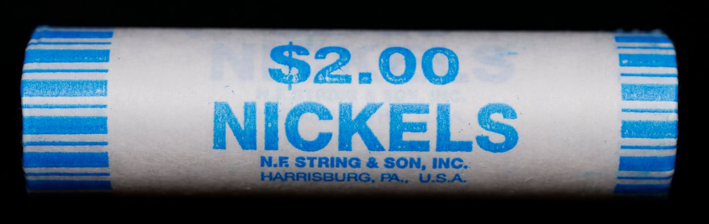 Shotgun Jefferson 5c roll, 2002-p 40 pcs String & Son Wrapper. A terrific Shotgun roll of unsearched Jefferson nickles. Most if not all coins should be gem or better