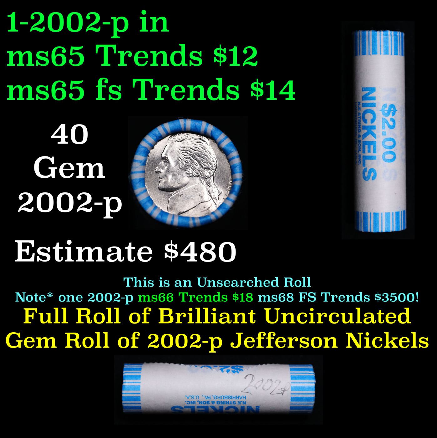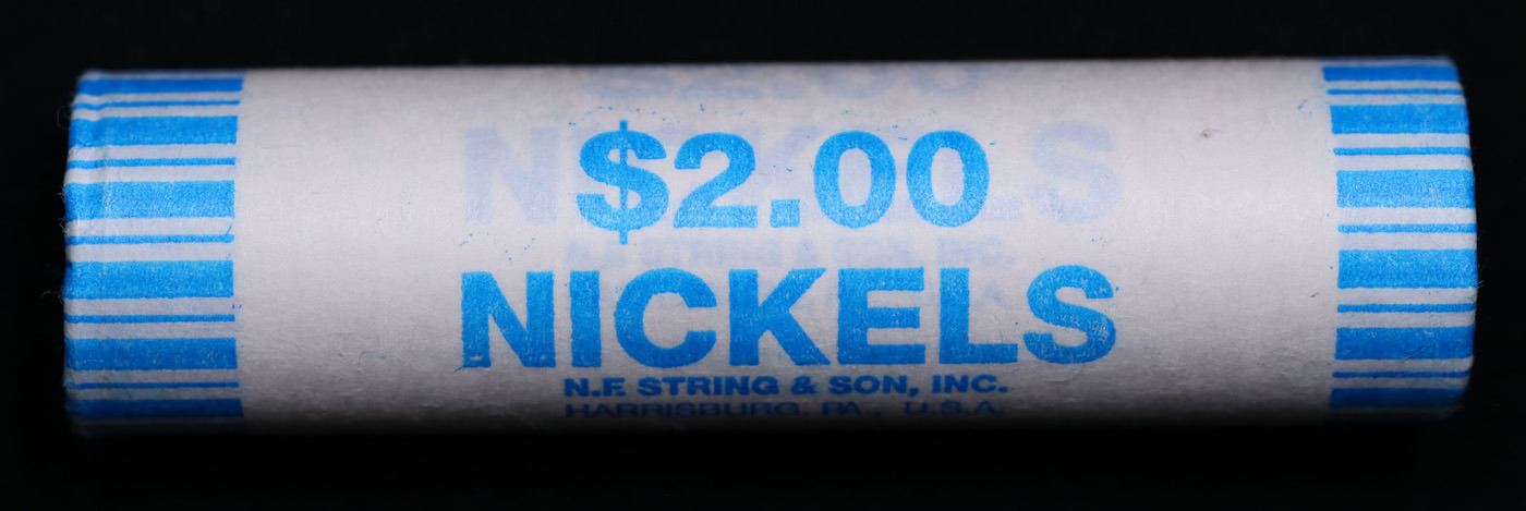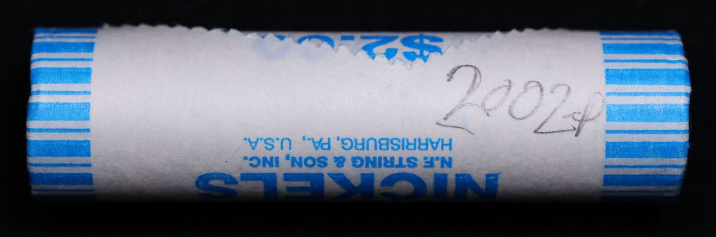 Shotgun Jefferson 5c roll, 2002-p 40 pcs String & Son Wrapper. A terrific Shotgun roll of unsearched Jefferson nickles. Most if not all coins should be gem or better
