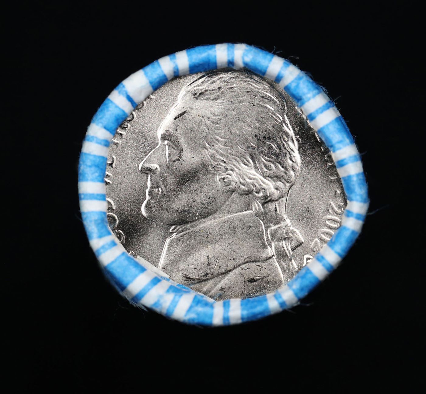 Shotgun Jefferson 5c roll, 2002-p 40 pcs String & Son Wrapper. A terrific Shotgun roll of unsearched Jefferson nickles. Most if not all coins should be gem or better