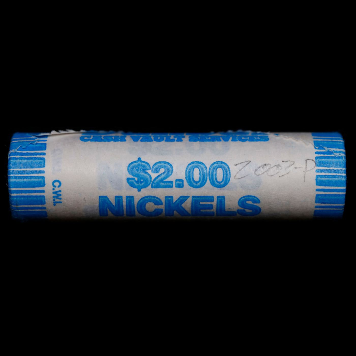 Shotgun Jefferson 5c roll, 2003-p 40 pcs Dunbar Wrapper. A terrific Shotgun roll of unsearched Jefferson nickles. Most if not all coins should be gem or better