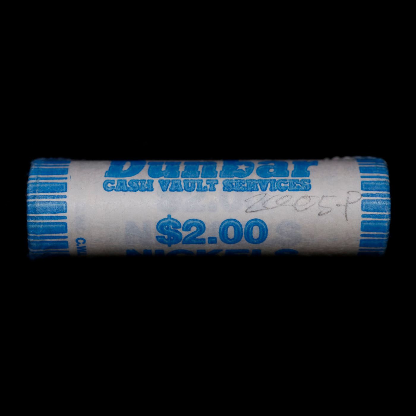 Shotgun Jefferson 5c roll, 2003-p 40 pcs Dunbar Wrapper. A terrific Shotgun roll of unsearched Jefferson nickles. Most if not all coins should be gem or better
