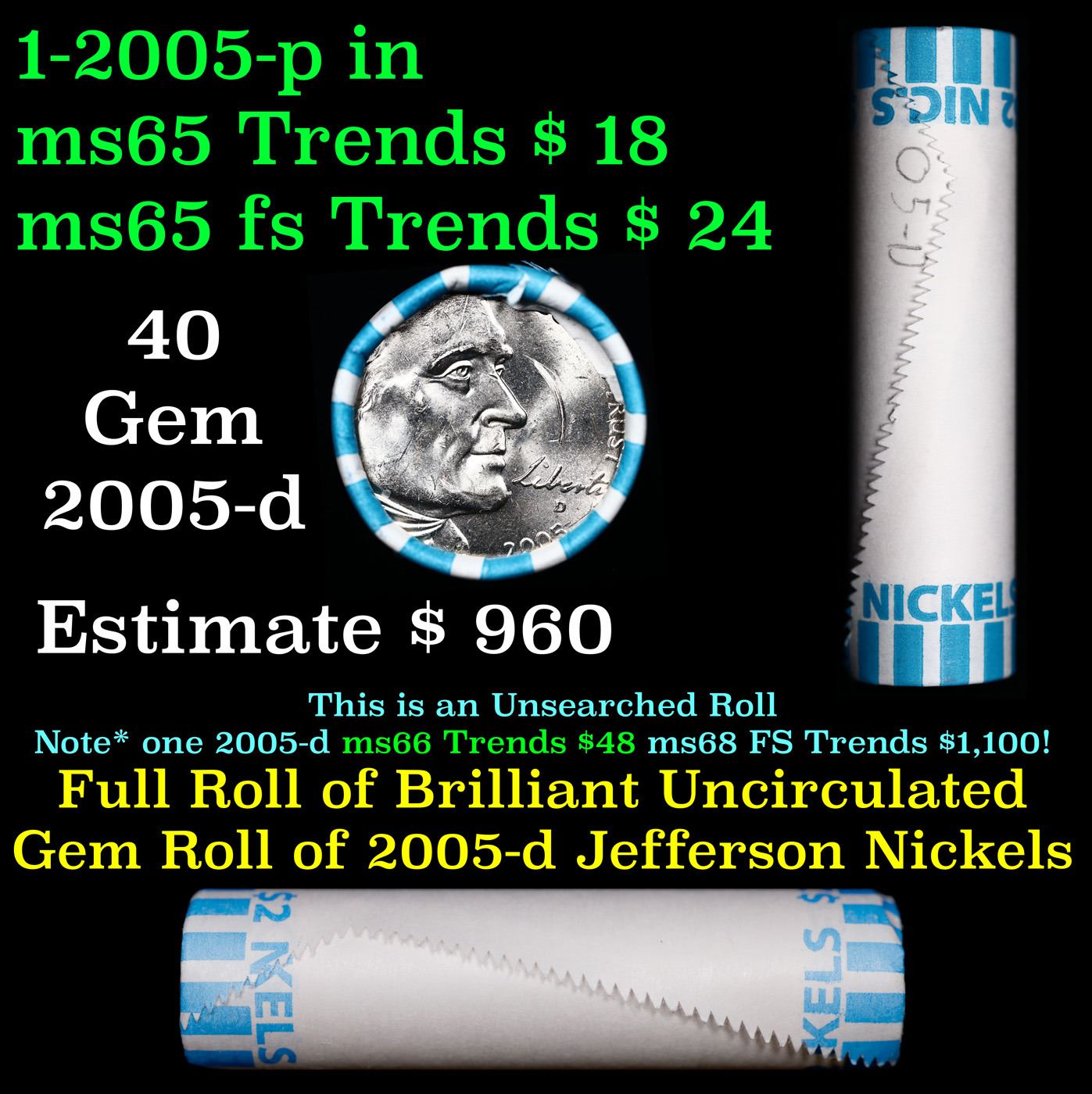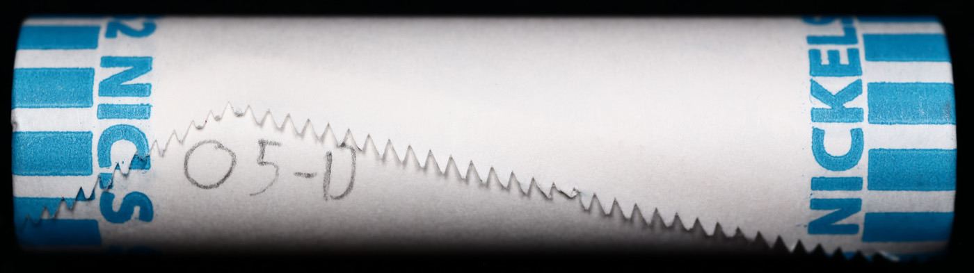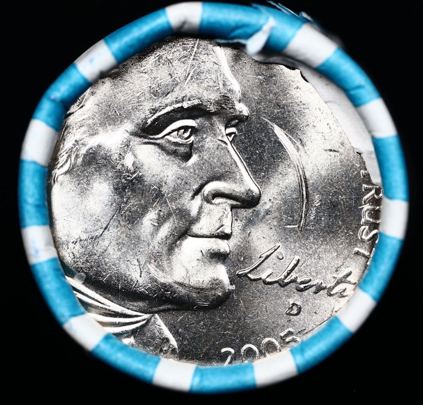 Shotgun Jefferson 5c roll, 2005-d 40 pcs Bank Wrapper. A terrific Shotgun roll of unsearched Jefferson nickles. Most if not all coins should be gem or better