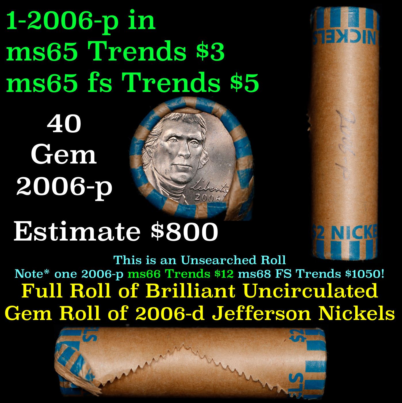 Shotgun Jefferson 5c roll,2006-p 40 pcs Bank Wrapper. A terrific Shotgun roll of unsearched Jefferson nickles. Most if not all coins should be gem or better