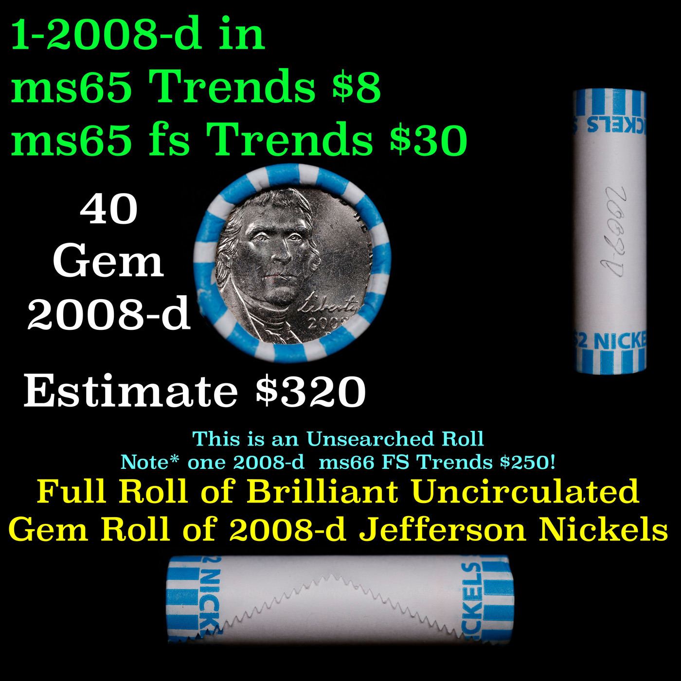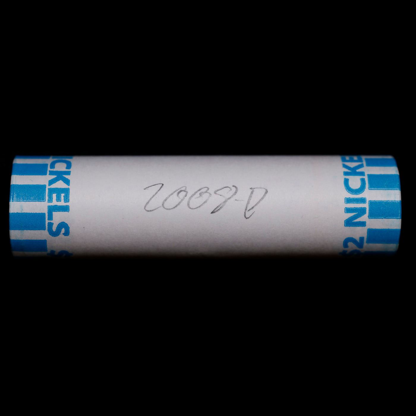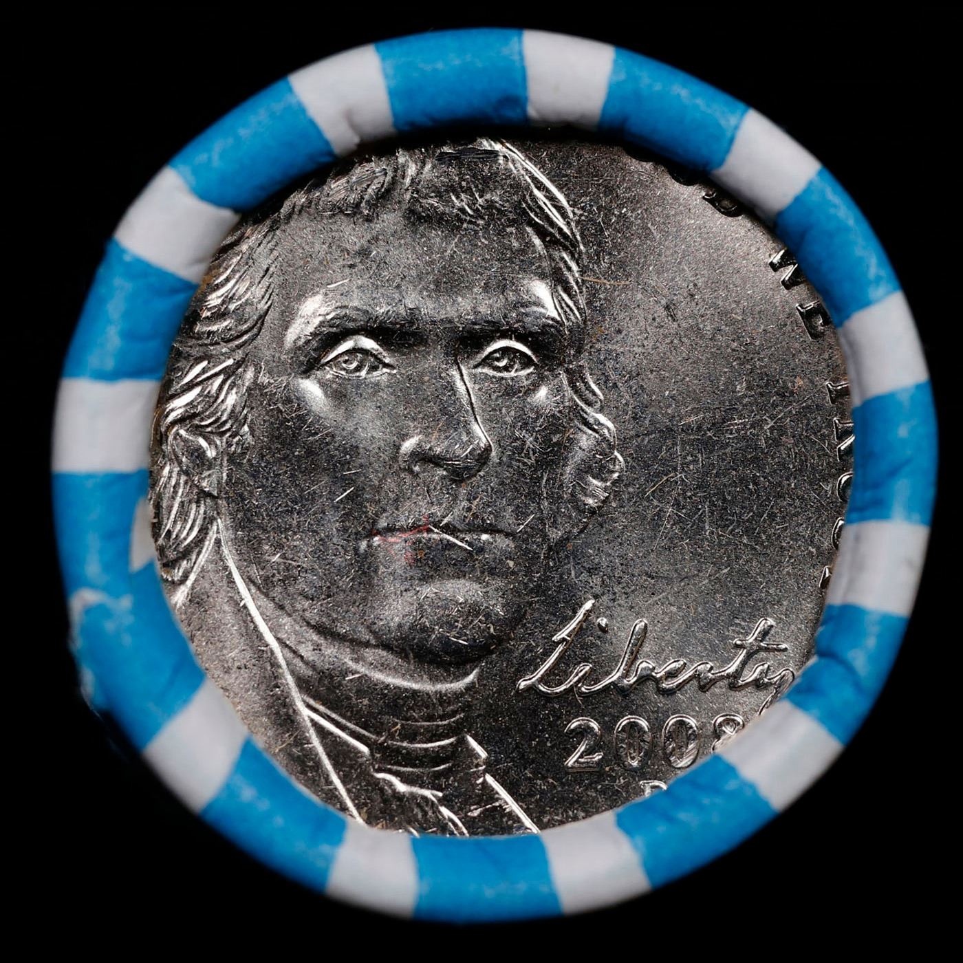 Shotgun Jefferson 5c roll, 2008-d 40 pcs Bank Wrapper. A terrific Shotgun roll of unsearched Jefferson nickles. Most if not all coins should be gem or better