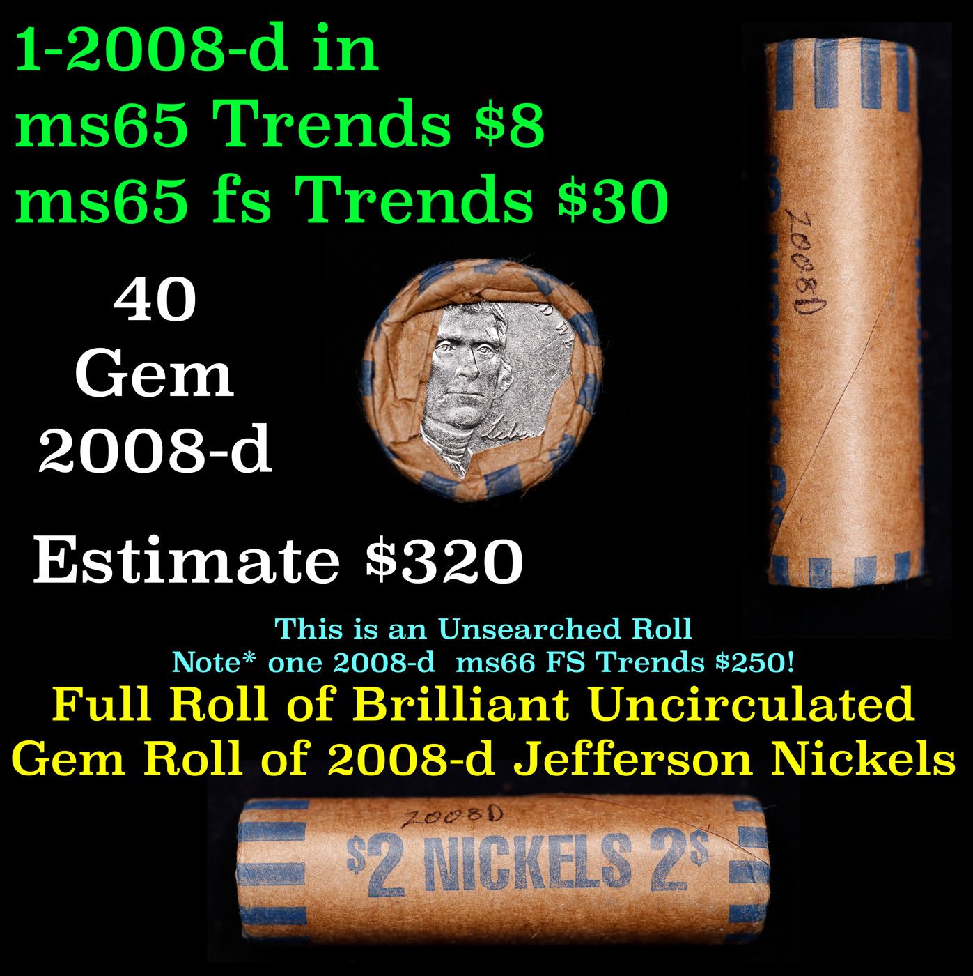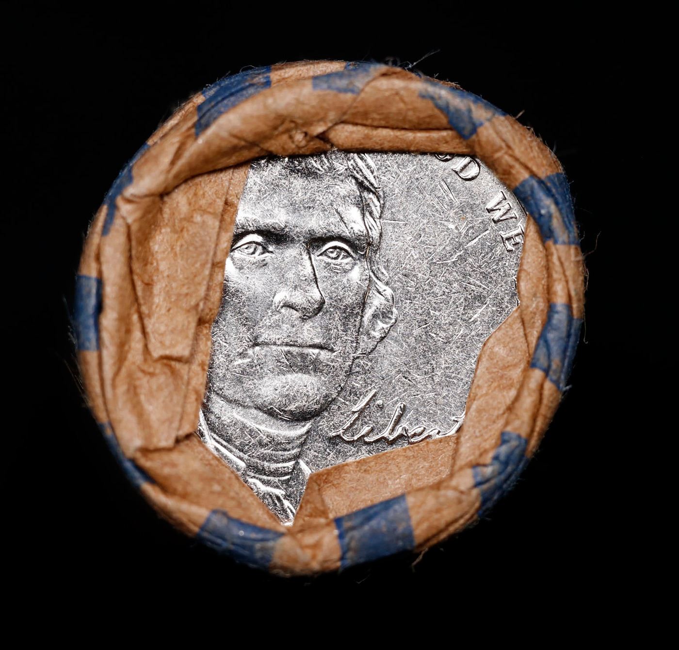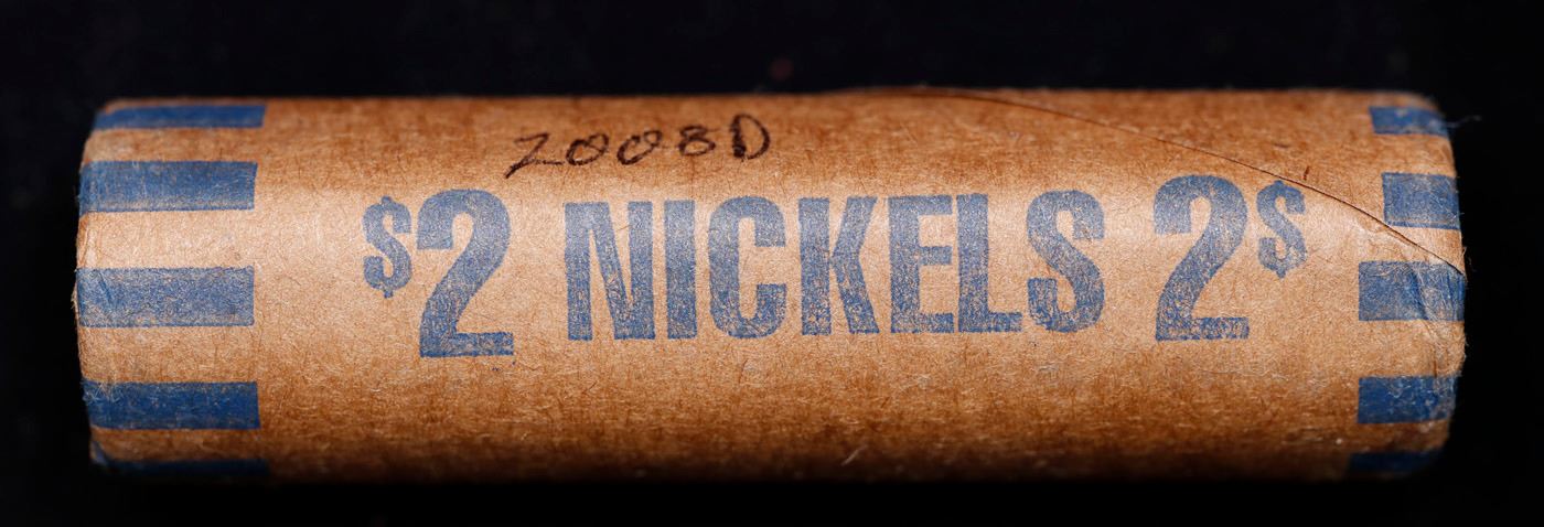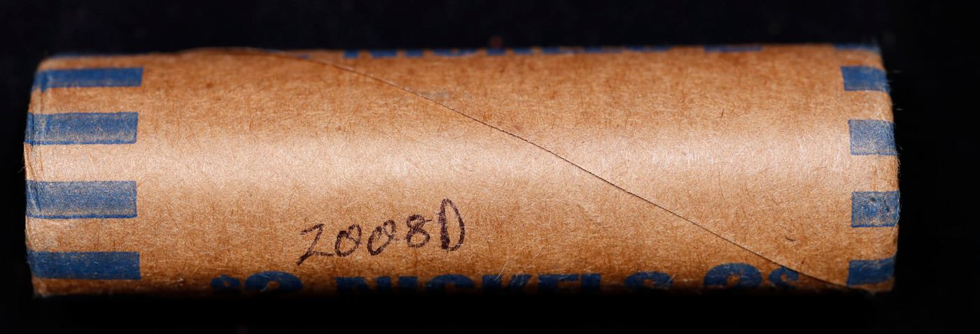 Shotgun Jefferson 5c roll, 2008-d 40 pcs Vintage Bank Wrapper. A terrific Shotgun roll of unsearched Jefferson nickles. Most if not all coins should be gem or better