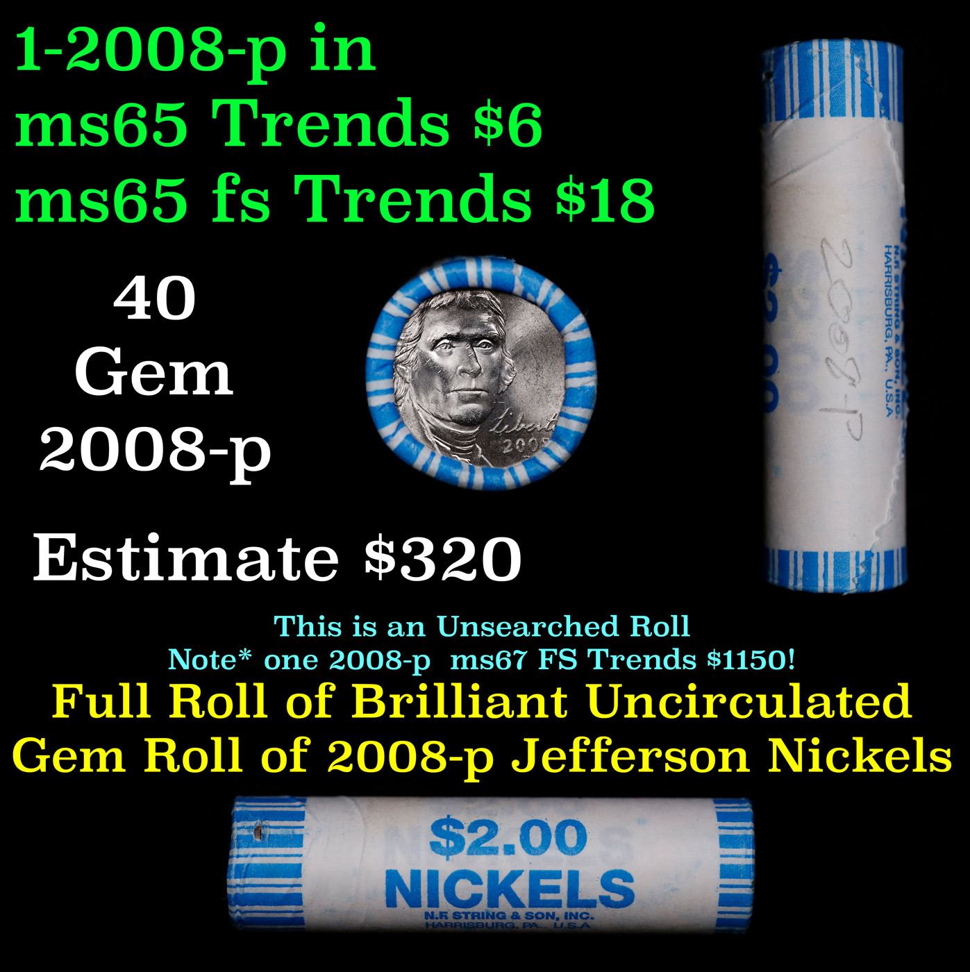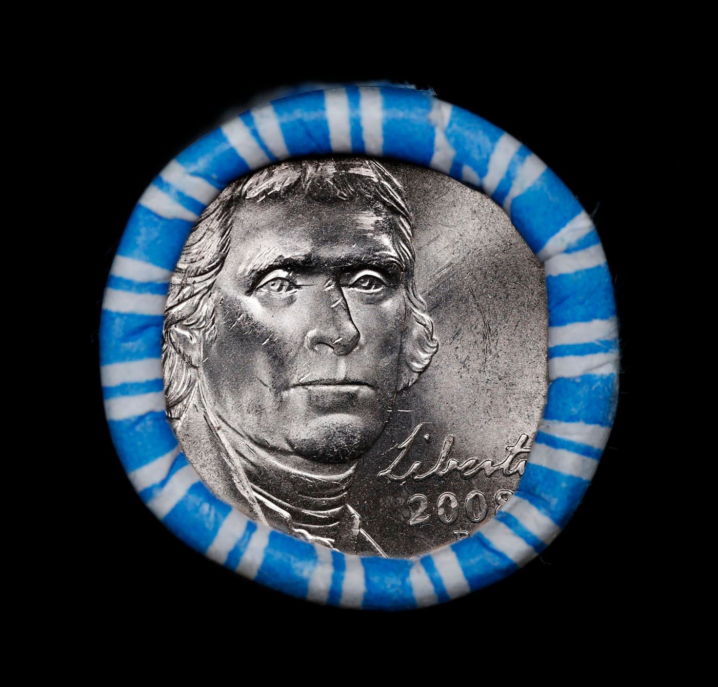 Shotgun Jefferson 5c roll, 2008-p 40 pcs String & Son Wrapper. A terrific Shotgun roll of unsearched Jefferson nickles. Most if not all coins should be gem or better