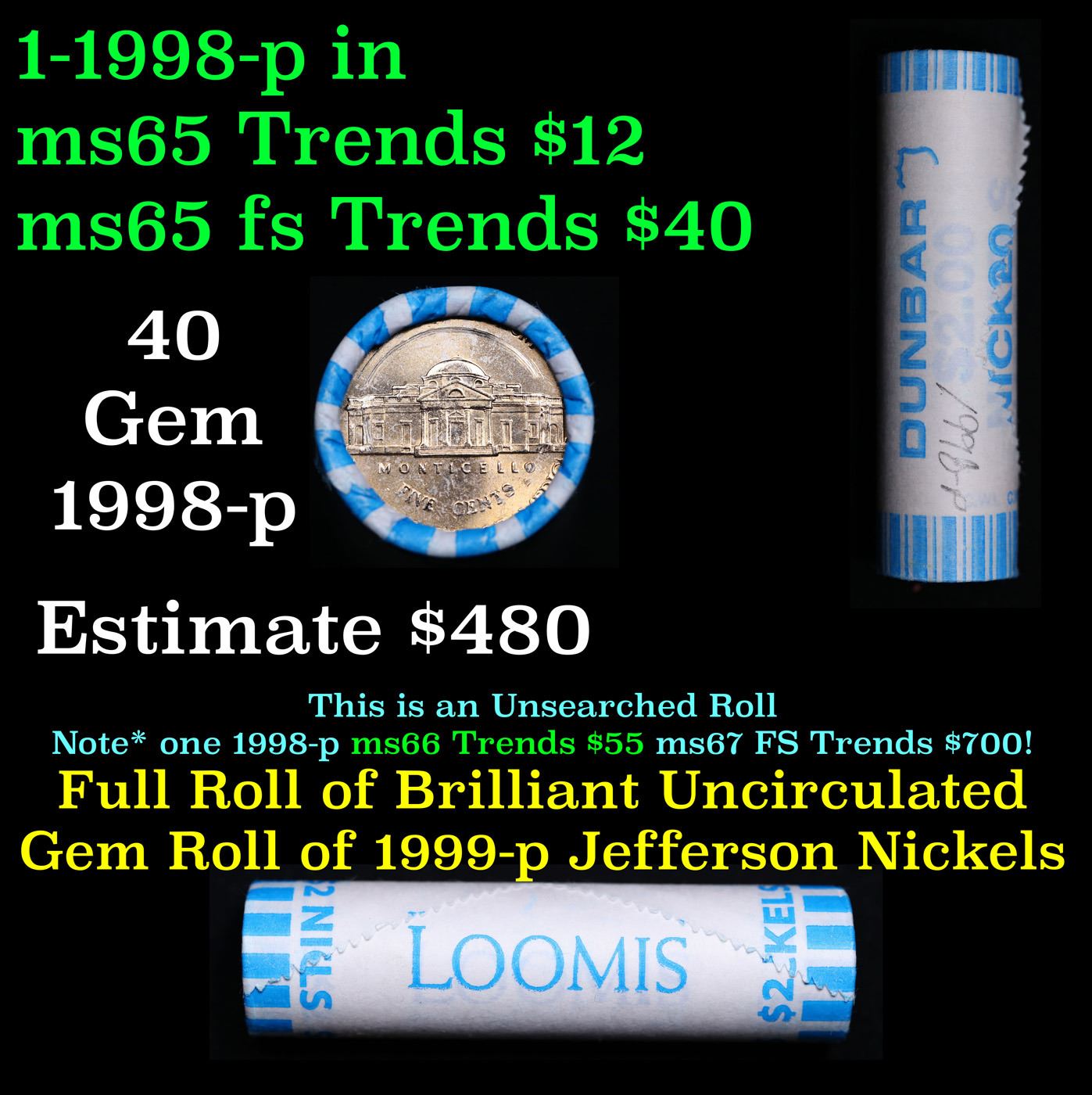 Shotgun Jefferson 5c roll, 2011-d 40 pcs Loomis Wrapper. A terrific Shotgun roll of unsearched Jefferson nickles. Most if not all coins should be gem or better