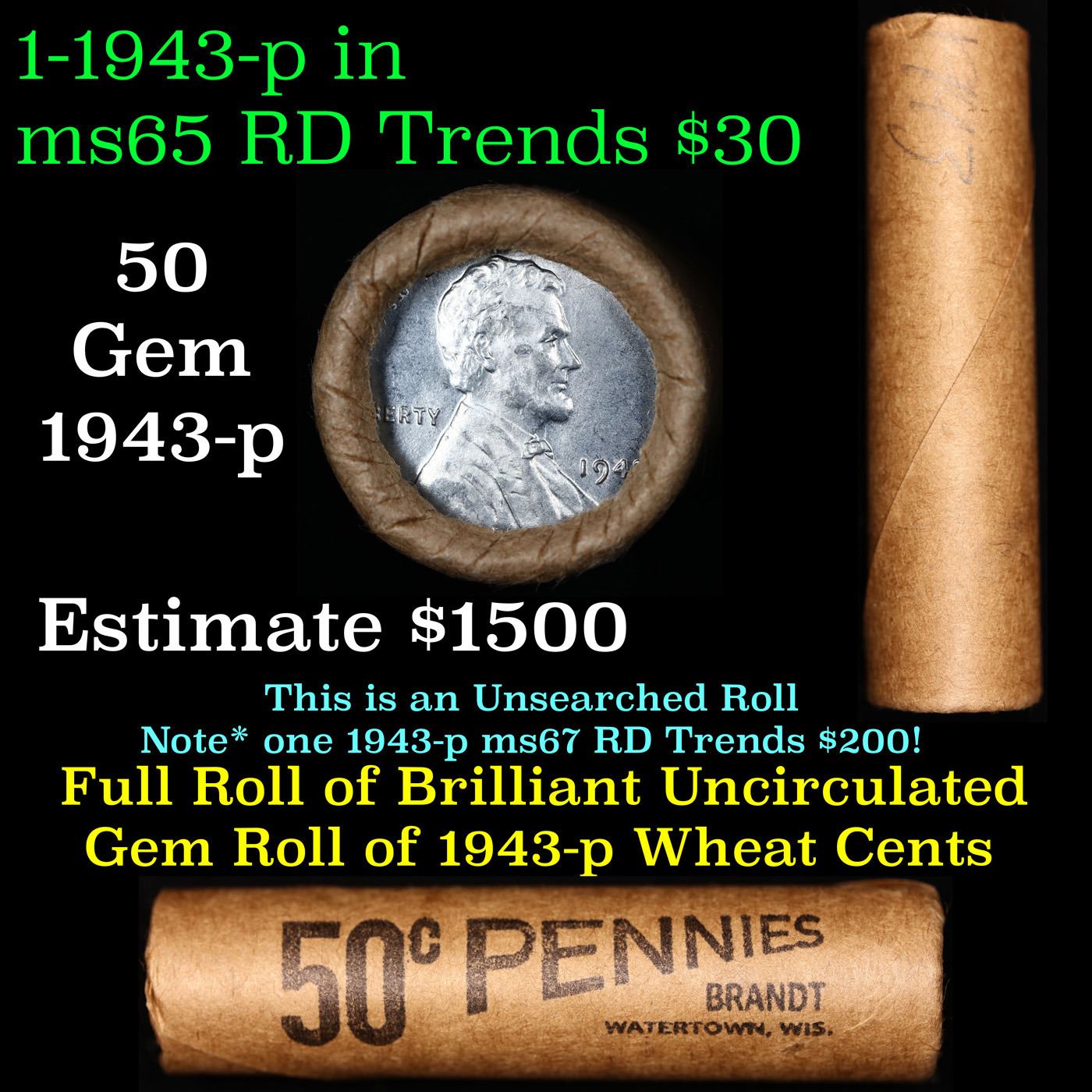 Shotgun Lincoln 1c roll, 1943-p 50 pcs Brandt Wrapper . 0
