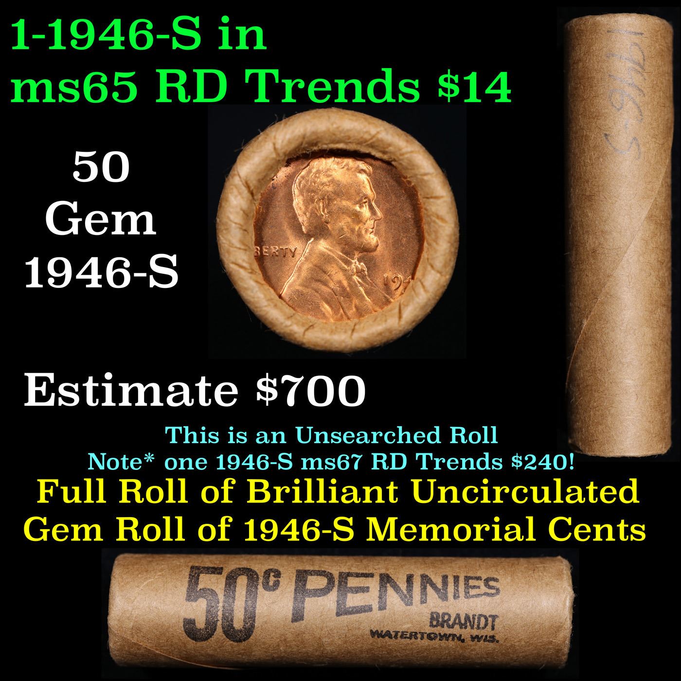 Shotgun Lincoln 1c roll, 1946-s 50 pcs Brandt Wrapper .