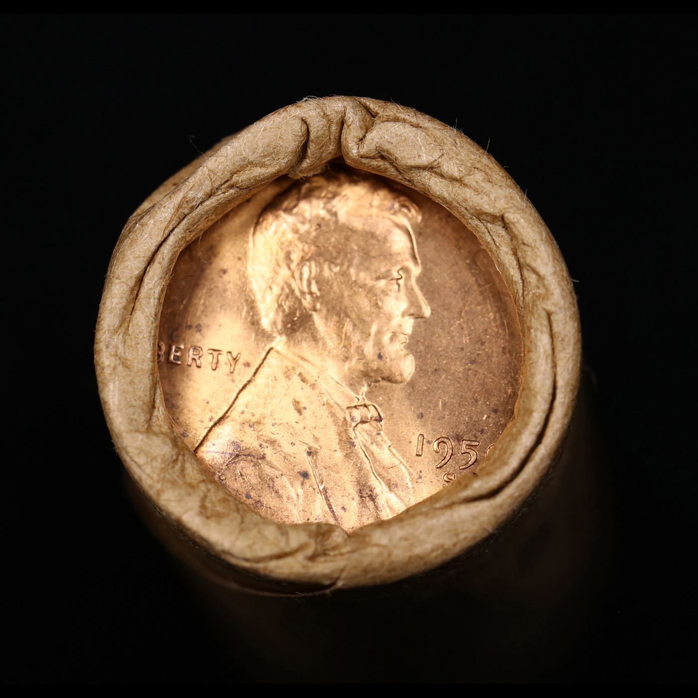 Shotgun Lincoln 1c roll, 1950-s 50 pcs Brandt Wrapper.. A terrific Shotgun roll of Lincoln cents. Most if not all coin should be cherry red.
